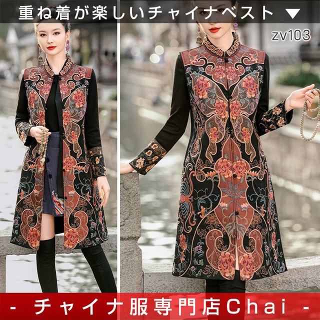 チャイナ服 トップス 凝った刺繍 ノースリーブ ロング丈 上品 重ね着にちょうどいい 普段着 民族衣装 zv102