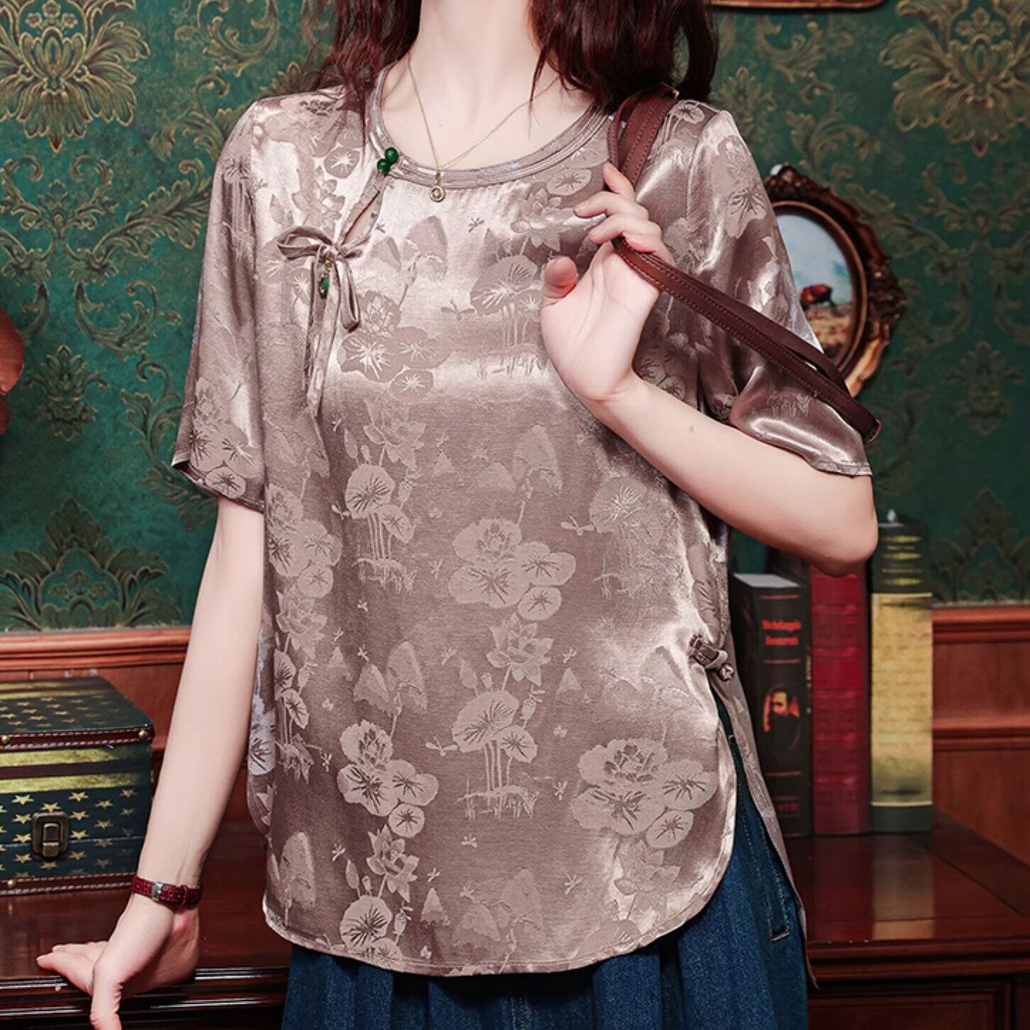 チャイナ服 トップス 春夏薄手 ゆったり エレガント 上品な風合い 襟なし 半袖 普段着チャイナ zh580