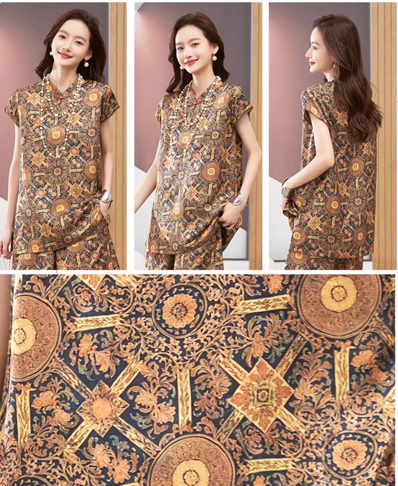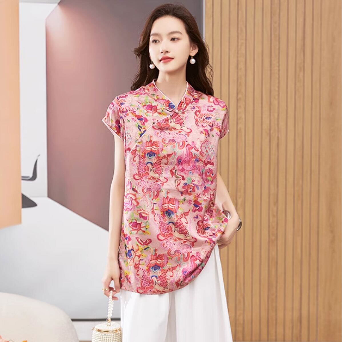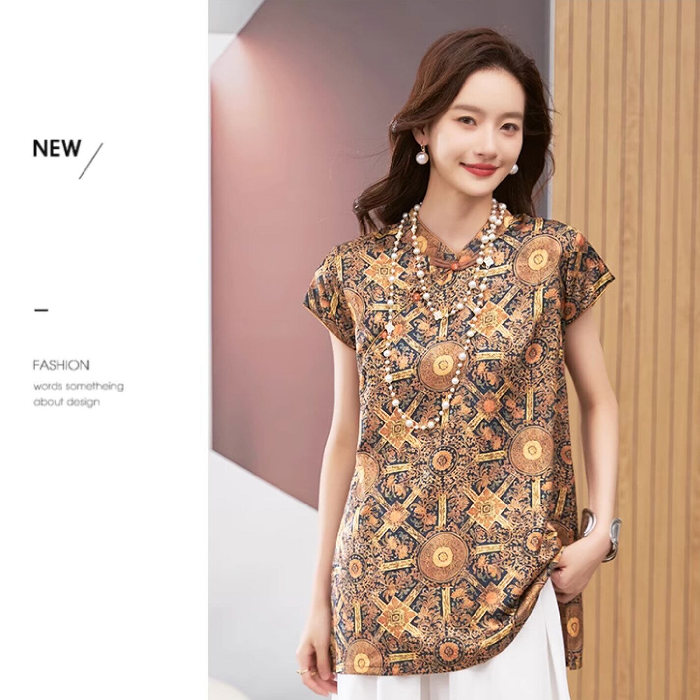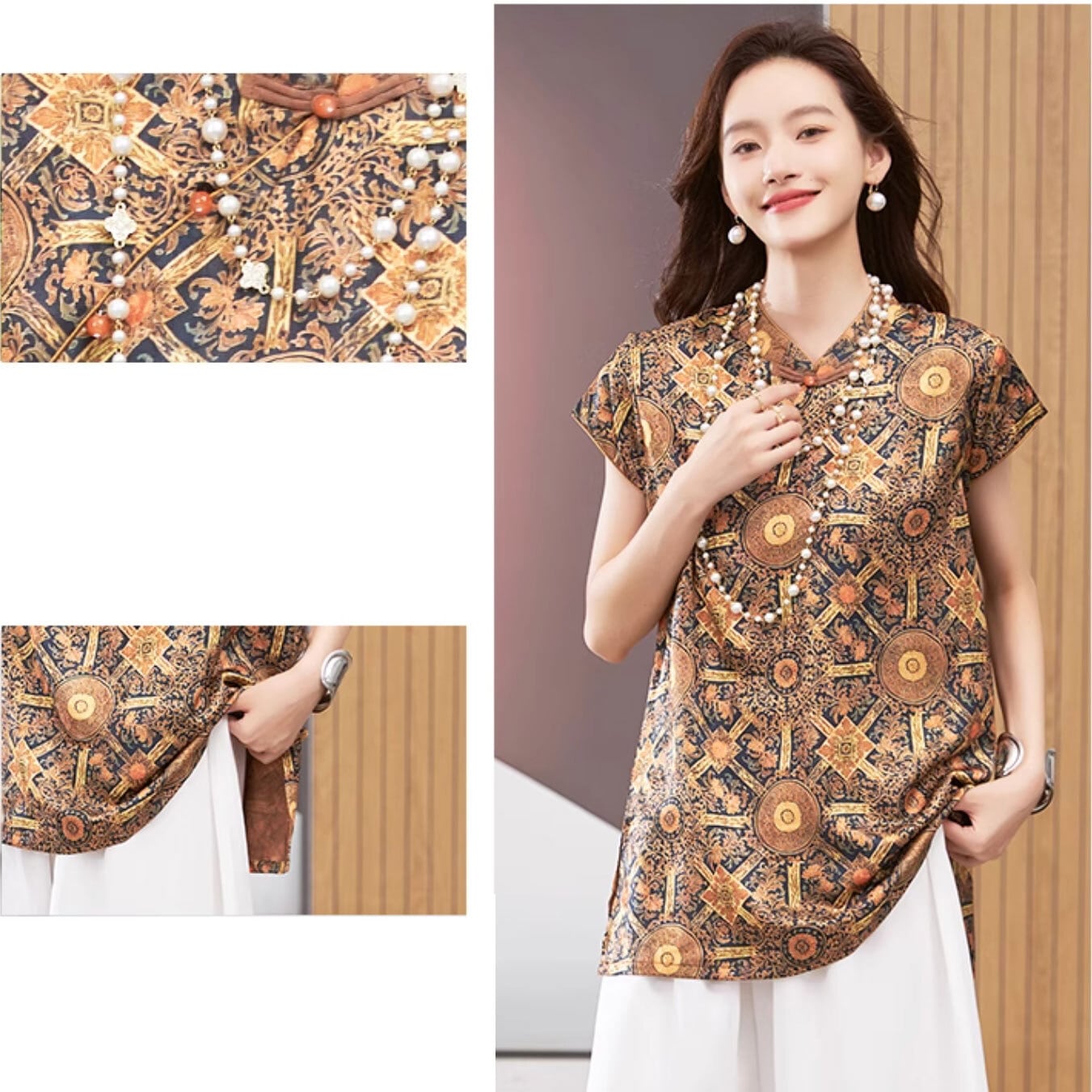 チャイナ服 トップス 春夏 半袖 総柄 浅襟 華やかな風合い 普段着チャイナ 民族衣装 zh602