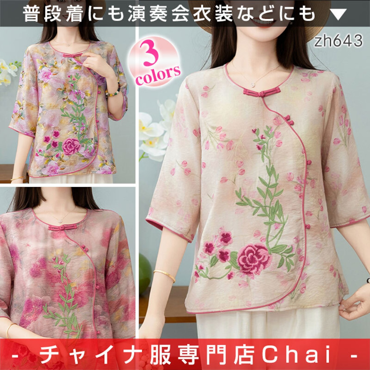 トップスも普段着も揃うチャイナ服専門店chaiです。こちらはチャイナ服 トップス 夏物薄手 刺繍 素朴 上品 落ち着いた風合い zh643の商品ページです。素朴で上品な風合いのチャイナトップスで、春夏の普段着でつかいやすいアイテムです。