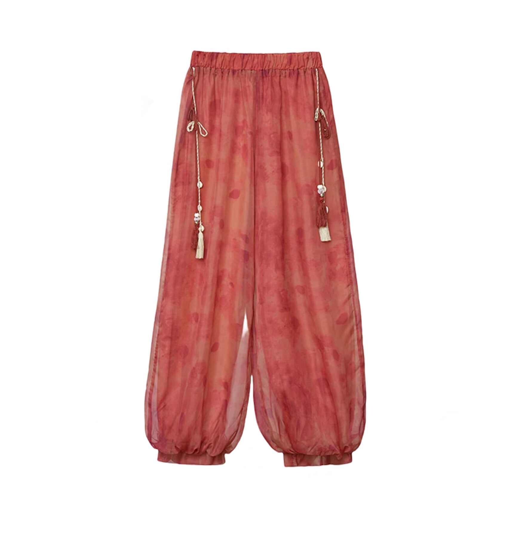 トップスも普段着も揃うチャイナ服専門店chaiです。こちらはチャイナ服 ワイドパンツ ゆったりシルエット 涼しげな風合い 赤 zb255の商品ページです。外側透け感のあるワイドパンツで、チャイナファッションのボトムスにぴったりのアイテムです。