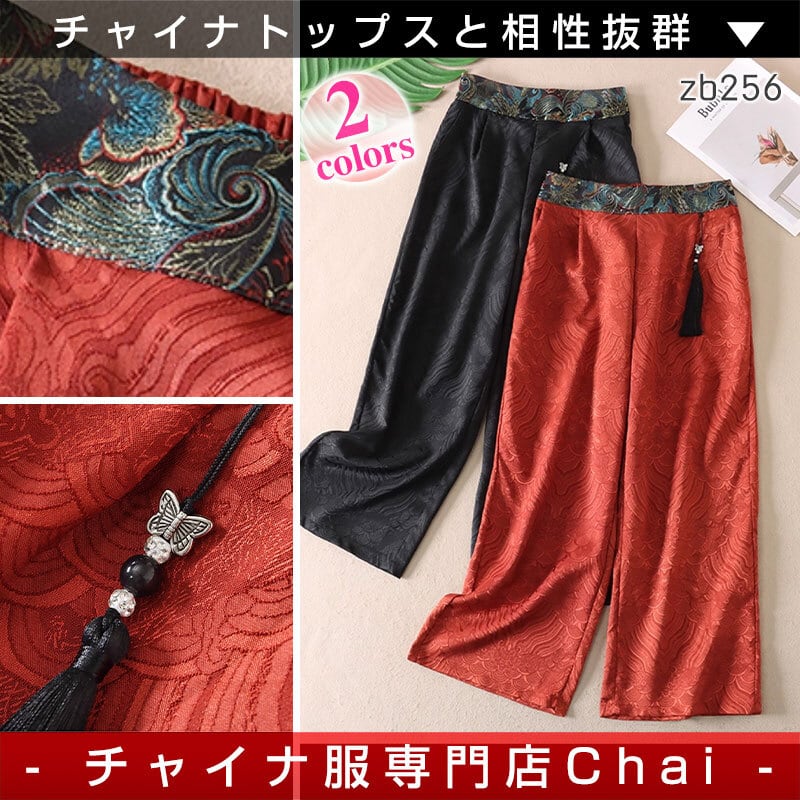 トップスも普段着も揃うチャイナ服専門店chaiです。こちらはチャイナ服 ストレートパンツ ゆったり 落ち着いた風合い チャイナトップスと相性がいいチャイナパンツ zb256の商品ページです。装飾の素敵なゆったりストレートパンツで、チャイナファッションのボトムスにぴったりのアイテムです。