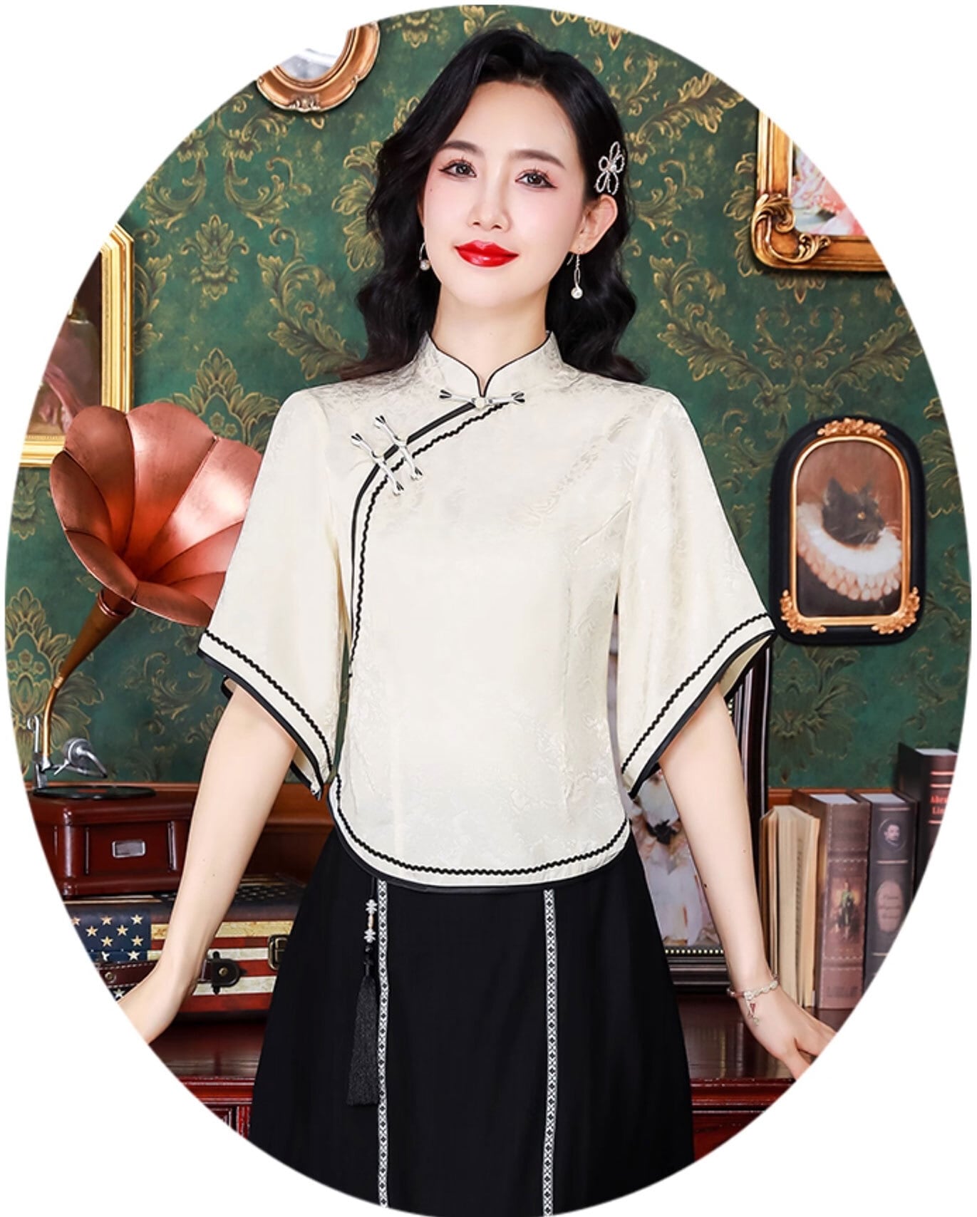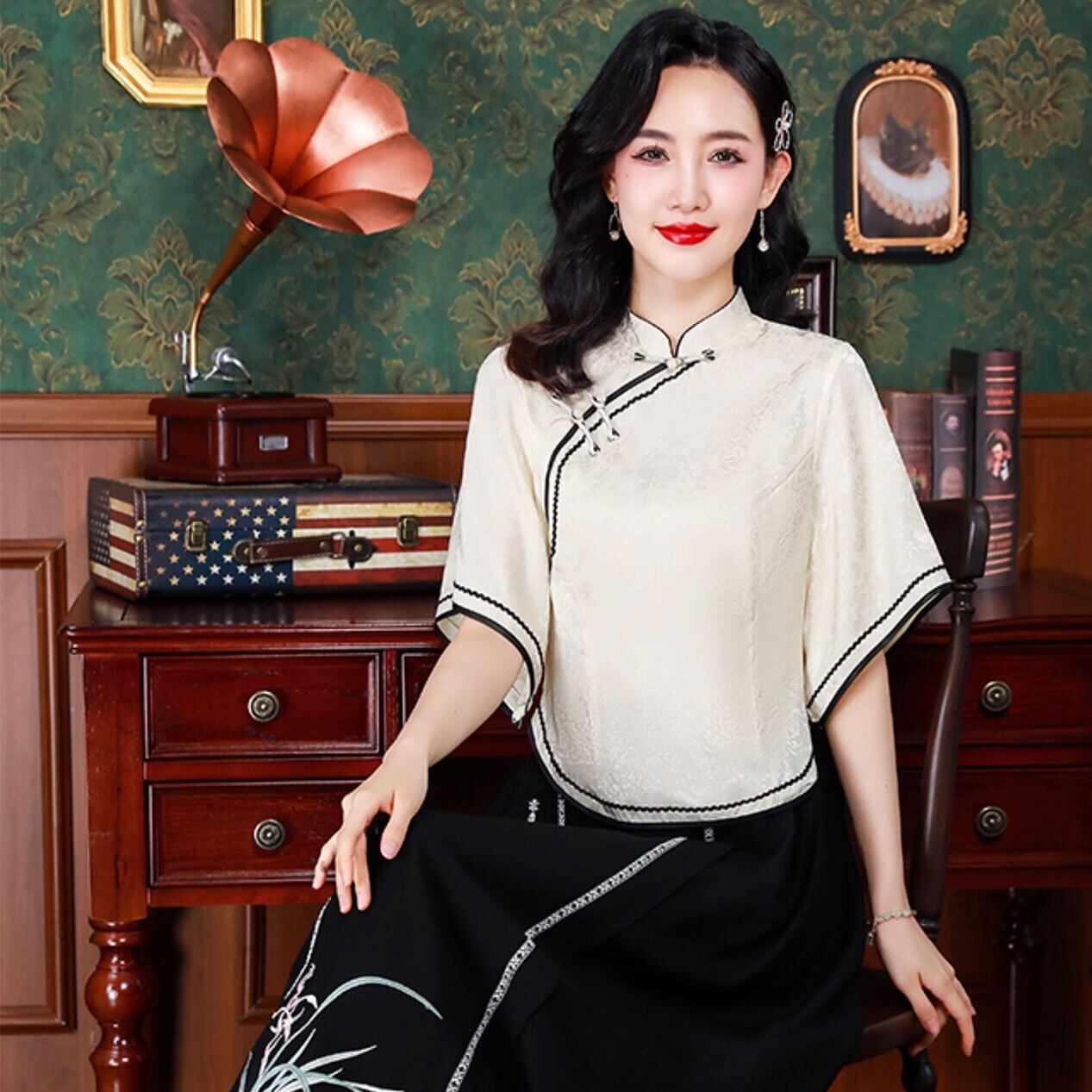 チャイナ服 トップス 春夏 上下セットでも買える 落ち着いた風合い 立襟 普段着チャイナトップス 二胡衣装 zh651