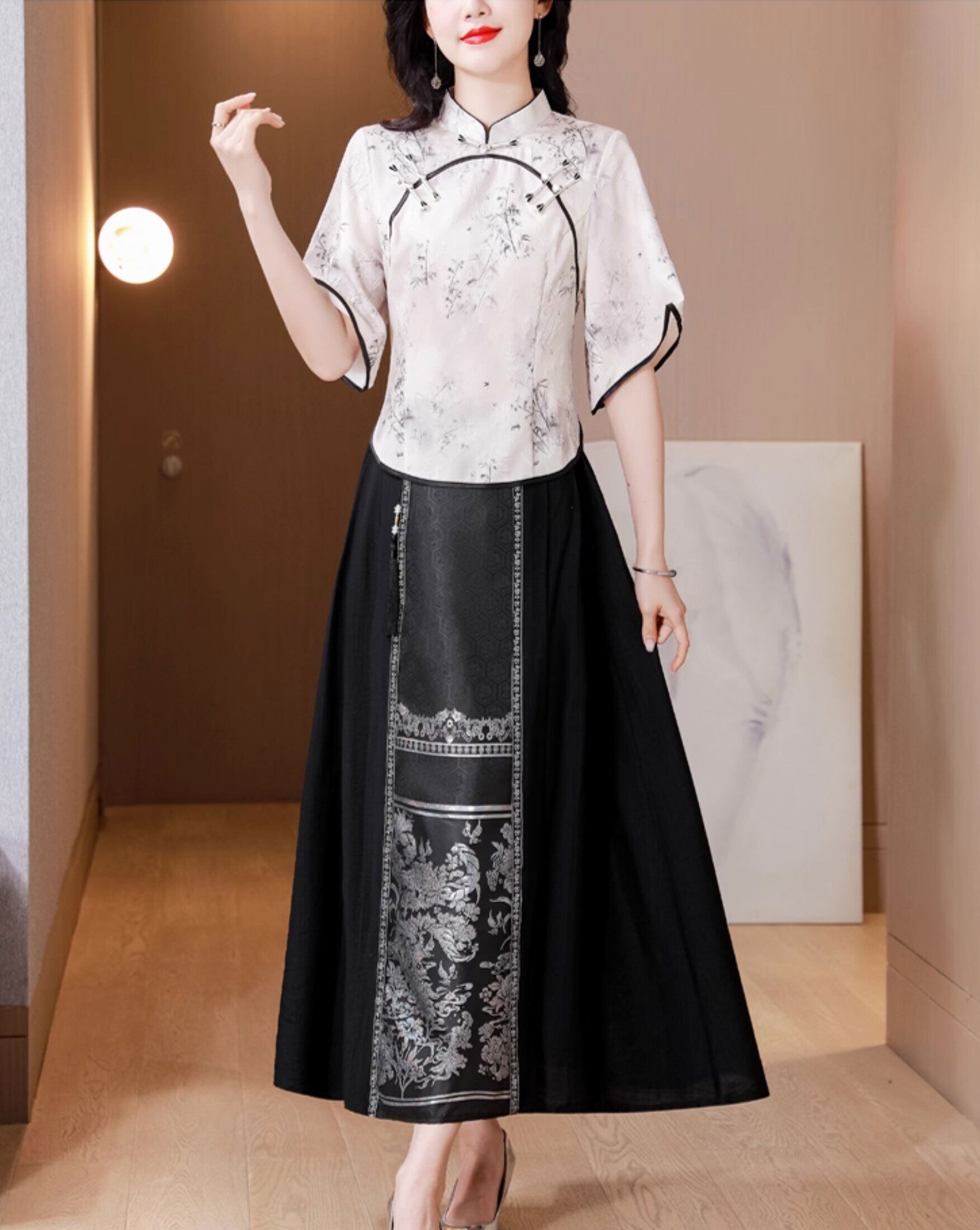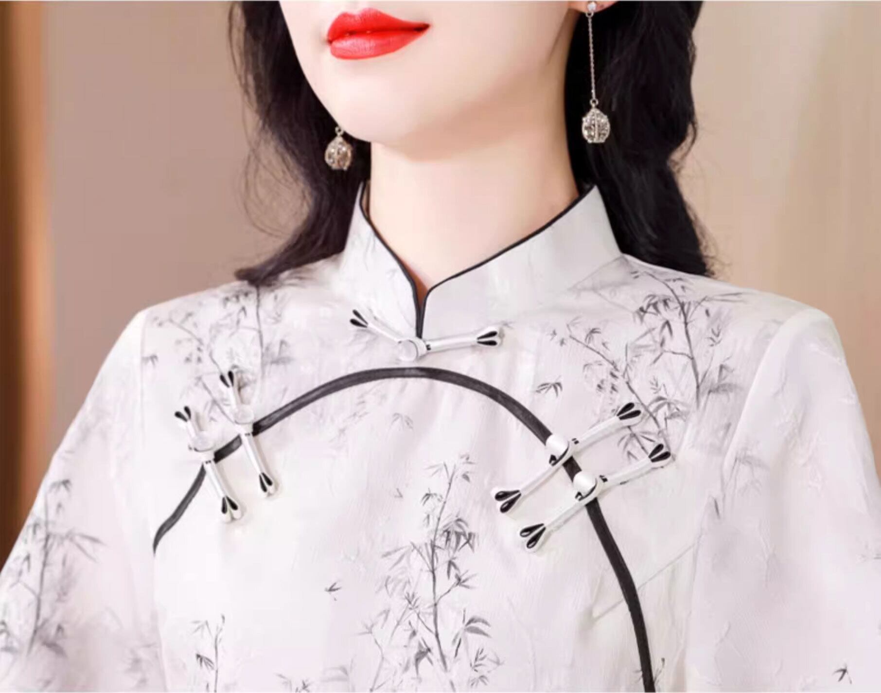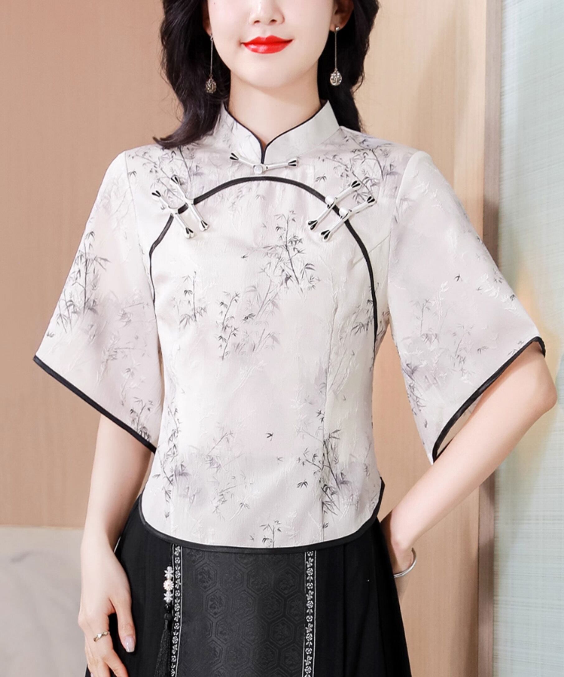 チャイナ服 トップス 春夏薄手 笹柄 上品な風合い 立襟 普段着チャイナトップス 二胡衣装 zh652