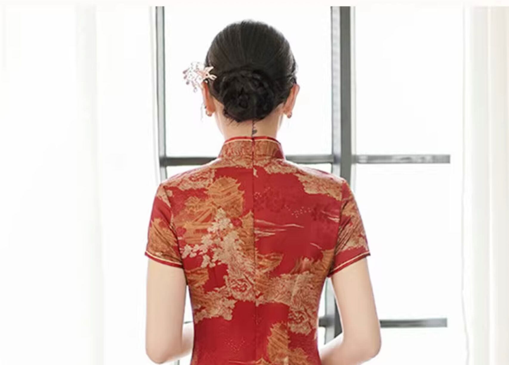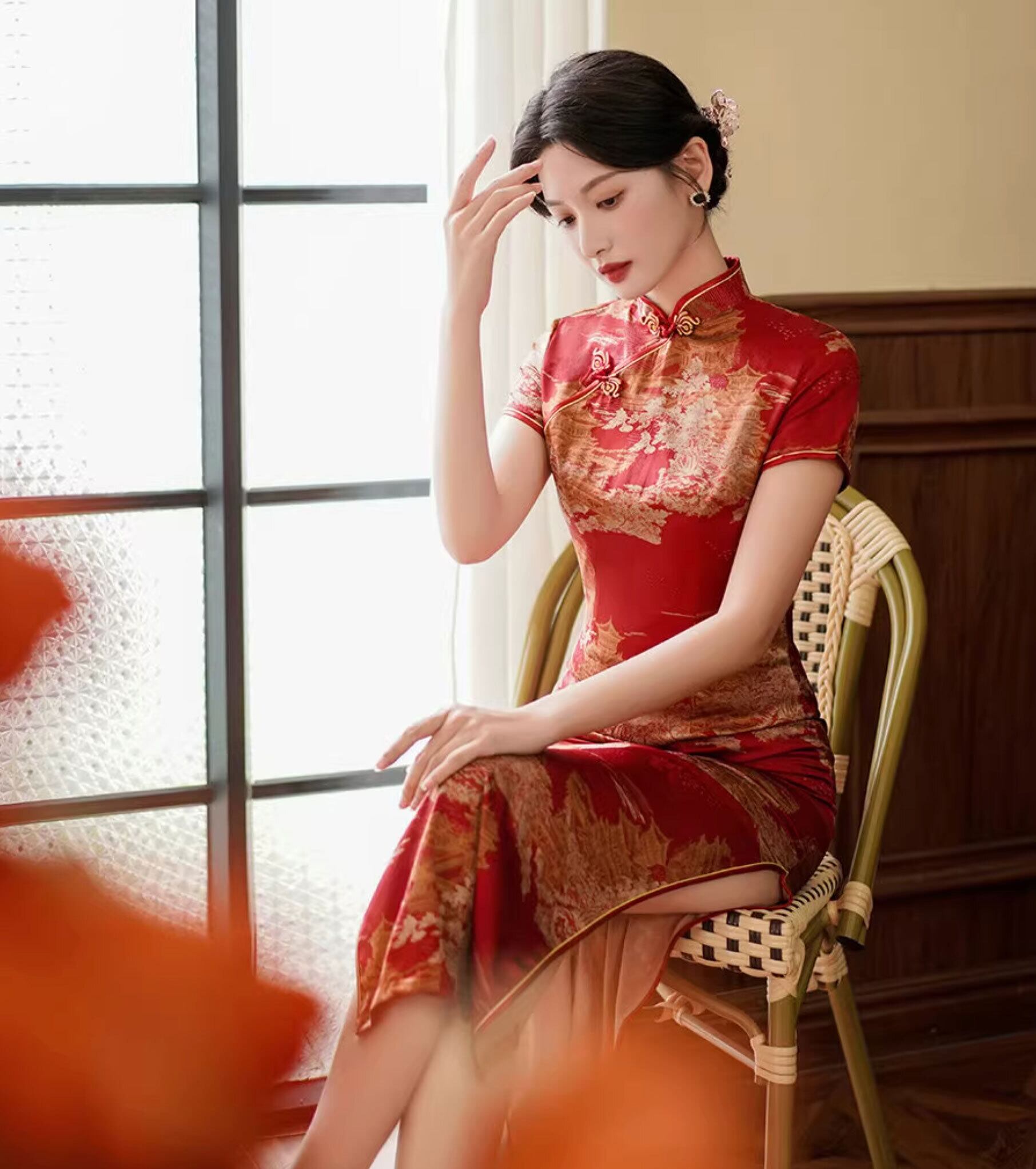 チャイナドレス ワンピース 旗袍 チーパオ ロング丈 素朴 落ち着いた風合い 半袖 チャイナ風ワンピ アオザイ zl484