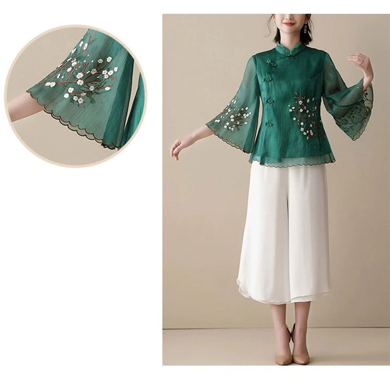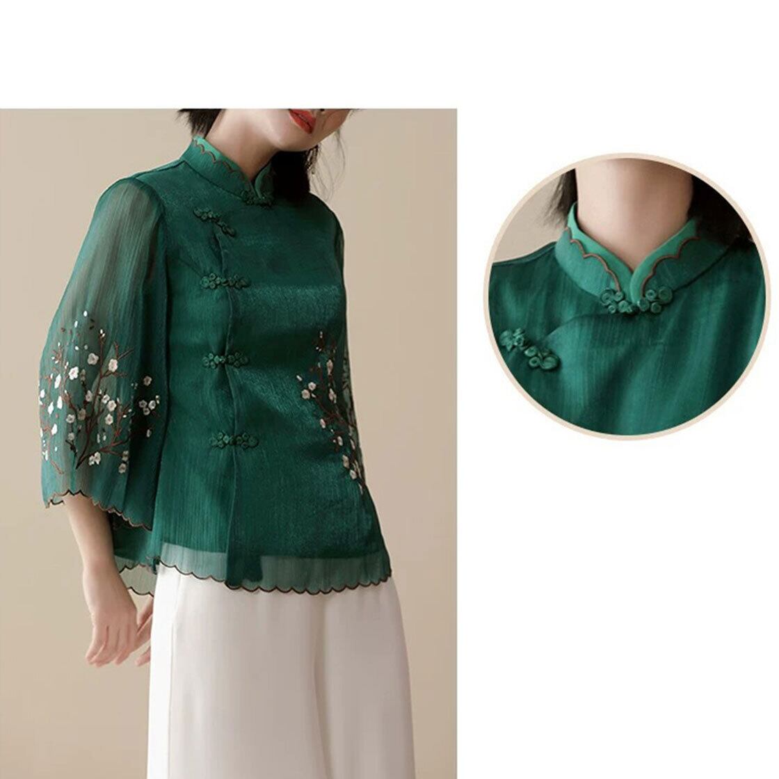 チャイナ服 トップス 薄手 刺繍 七分袖 上品 エレガント 普段着チャイナ服 二胡衣装 zh658