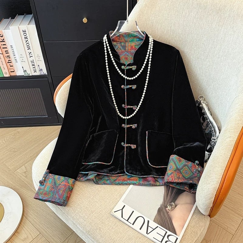 チャイナ服 トップス 長袖 リバーシブル 高級感 エレガント 上品な風合い 二胡衣装 普段着チャイナ zt641