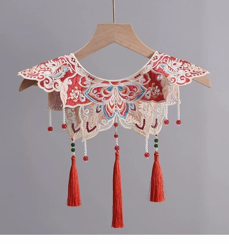 チャイナ服 トップス小物 本格 凝った刺繍 肩掛け タッセル付きケープ 肩当て 重ね着にちょうどよい 中国風 装飾品 zk27