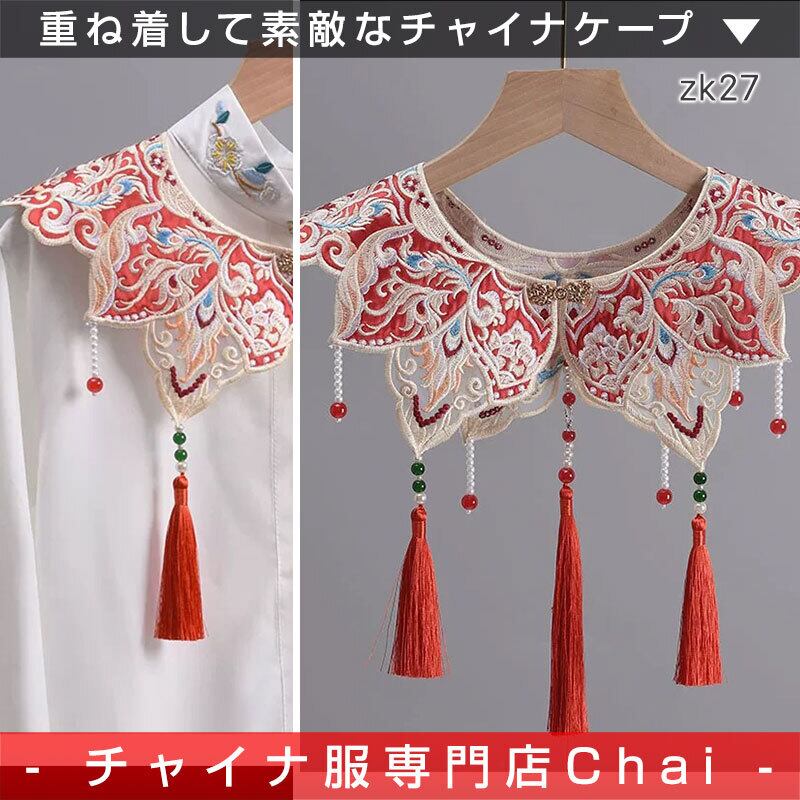 トップスも普段着も揃うチャイナ服専門店chaiです。こちらはチャイナ服 トップス小物 本格 凝った刺繍 肩掛け タッセル付きケープ 肩当て 重ね着にちょうどよい 中国風 装飾品 zk27の商品ページです。手持ちのシンプルなトップスに合わせて、お気軽に本格チャイナファッションに。