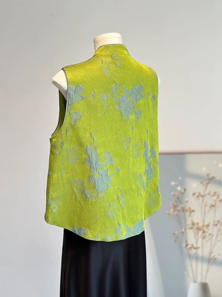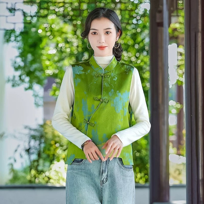 チャイナ服 ベスト 上品 ツヤあり エレガント 高級感 チャイナジレ 重ね着にちょうどいい zv98