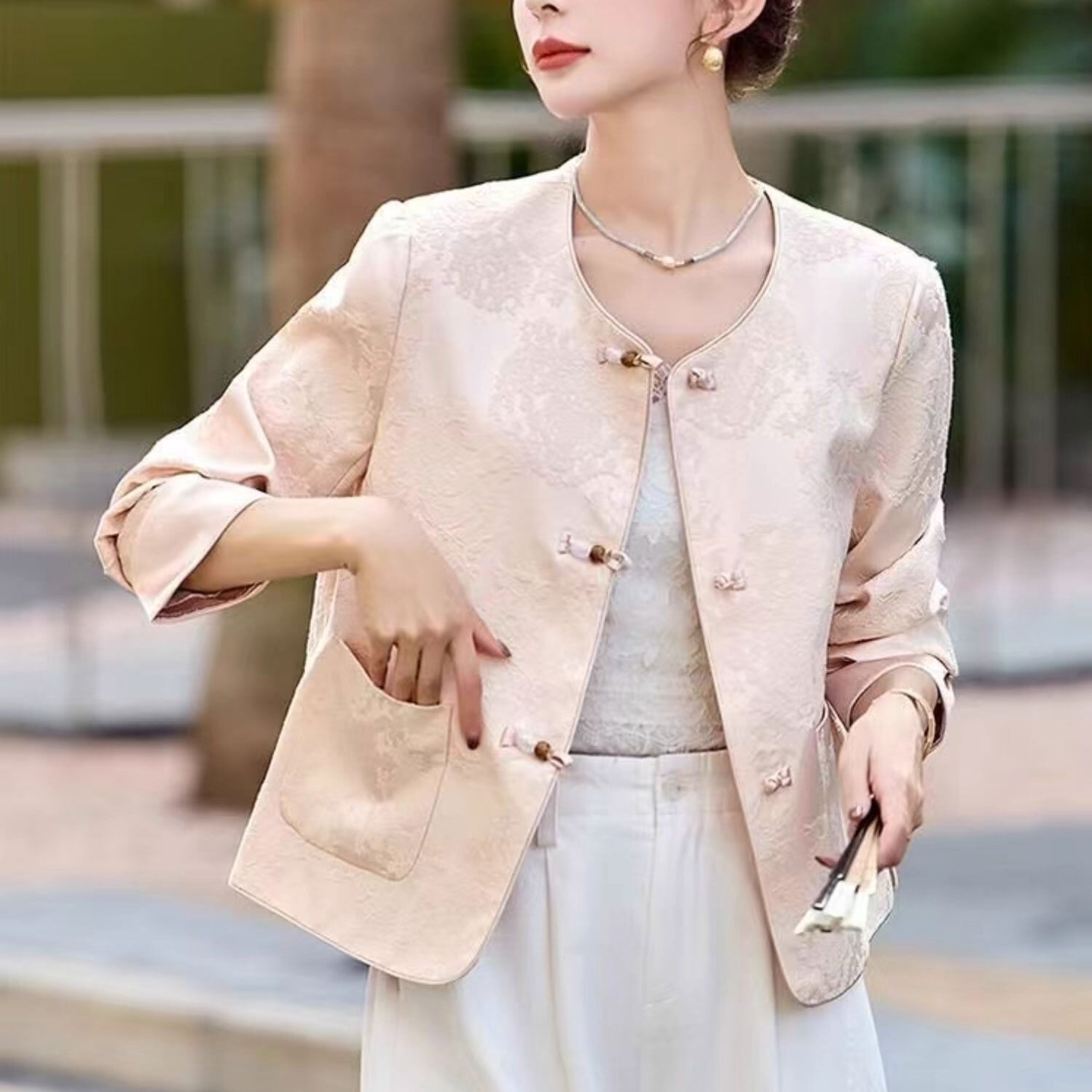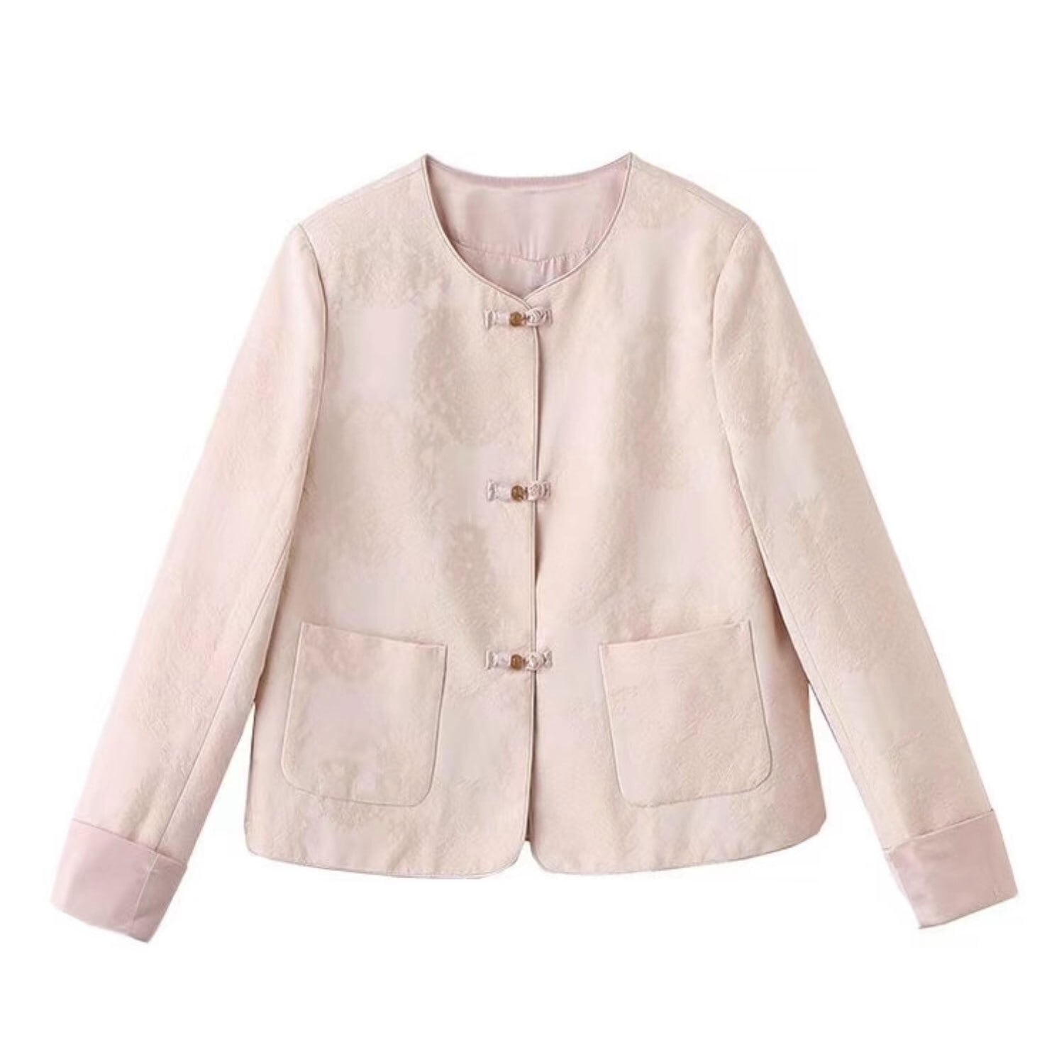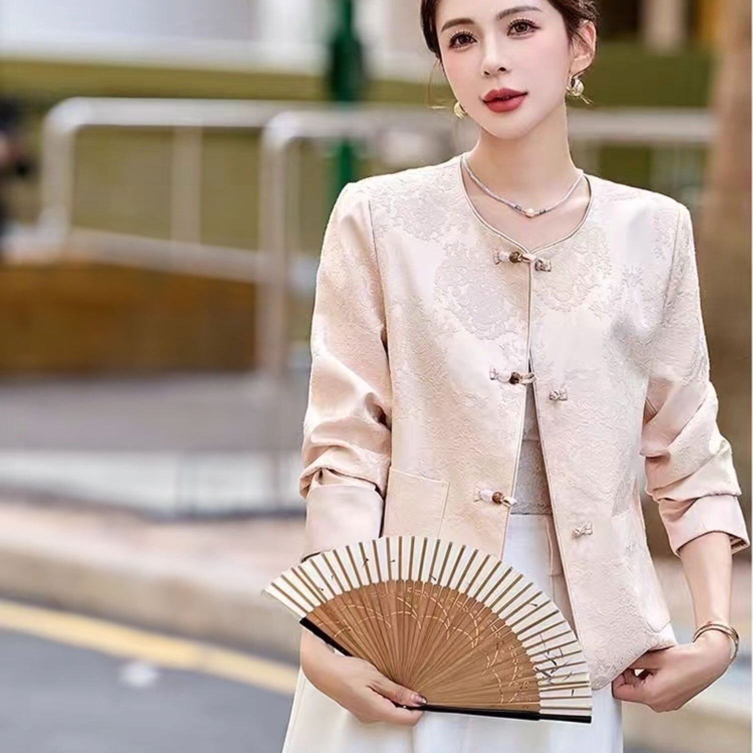 チャイナ服 トップス 長袖 襟なし ジャケット エレガント 上品な風合い ポケットあり チャイナボタン zt643