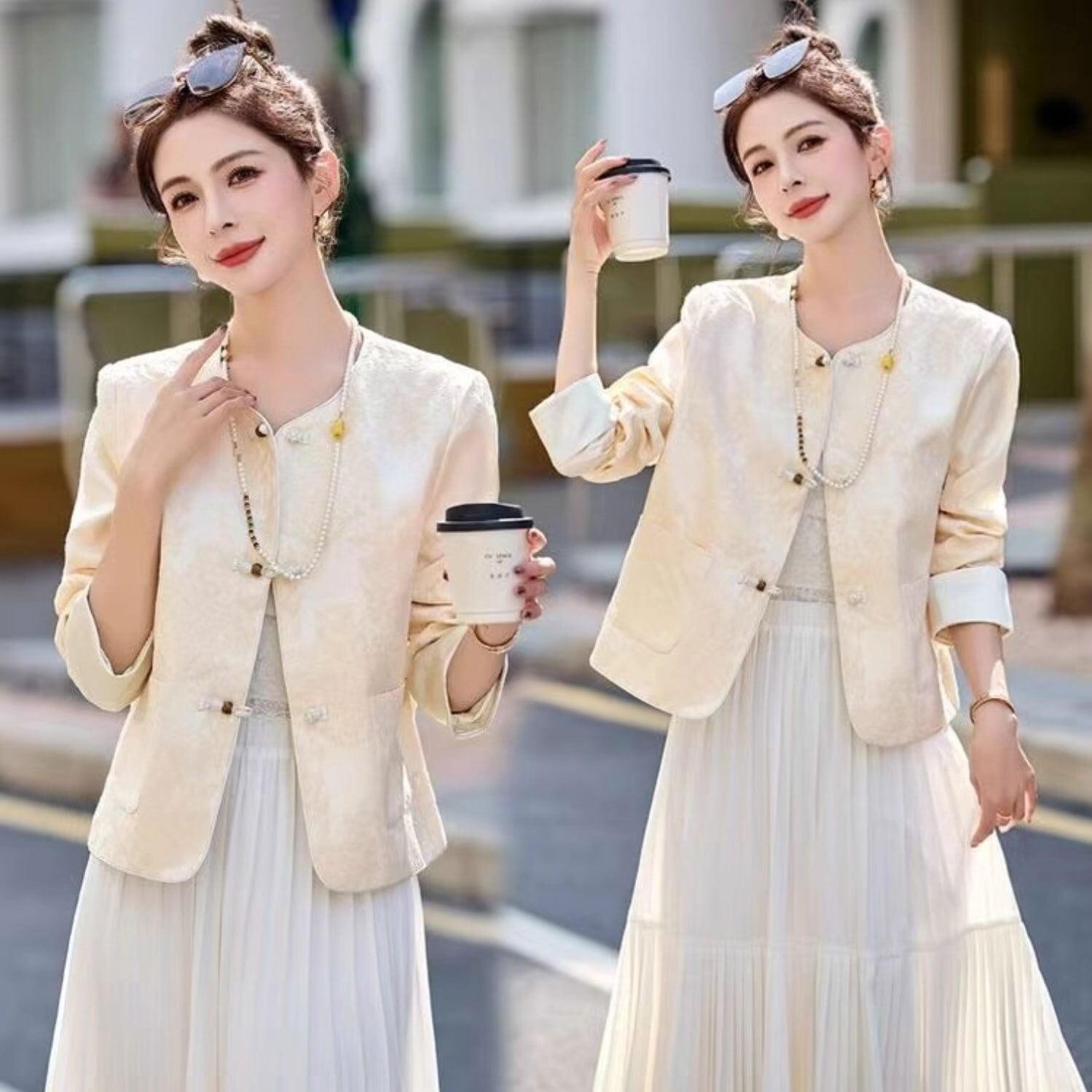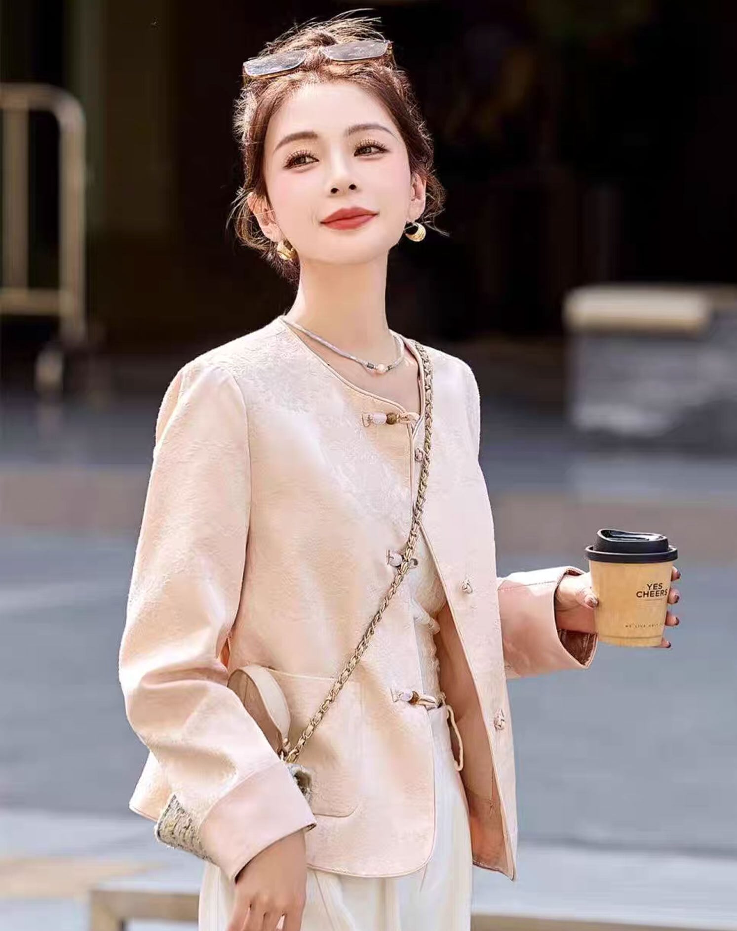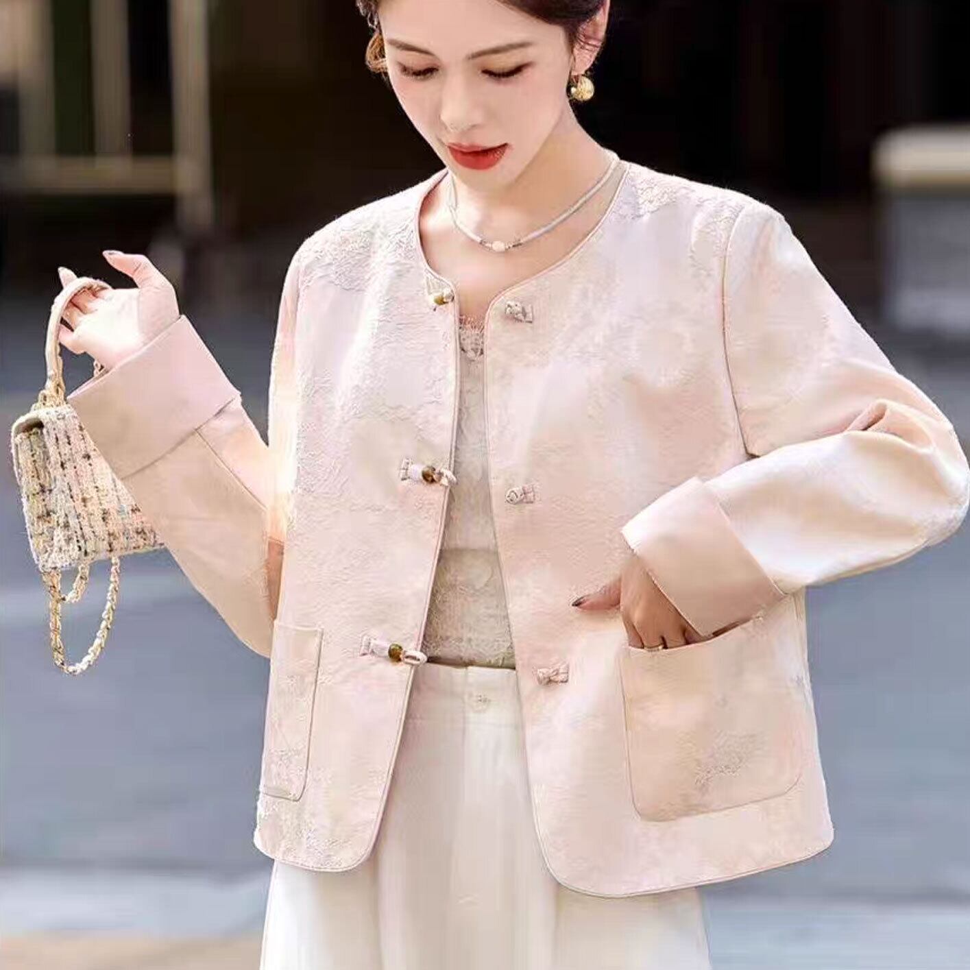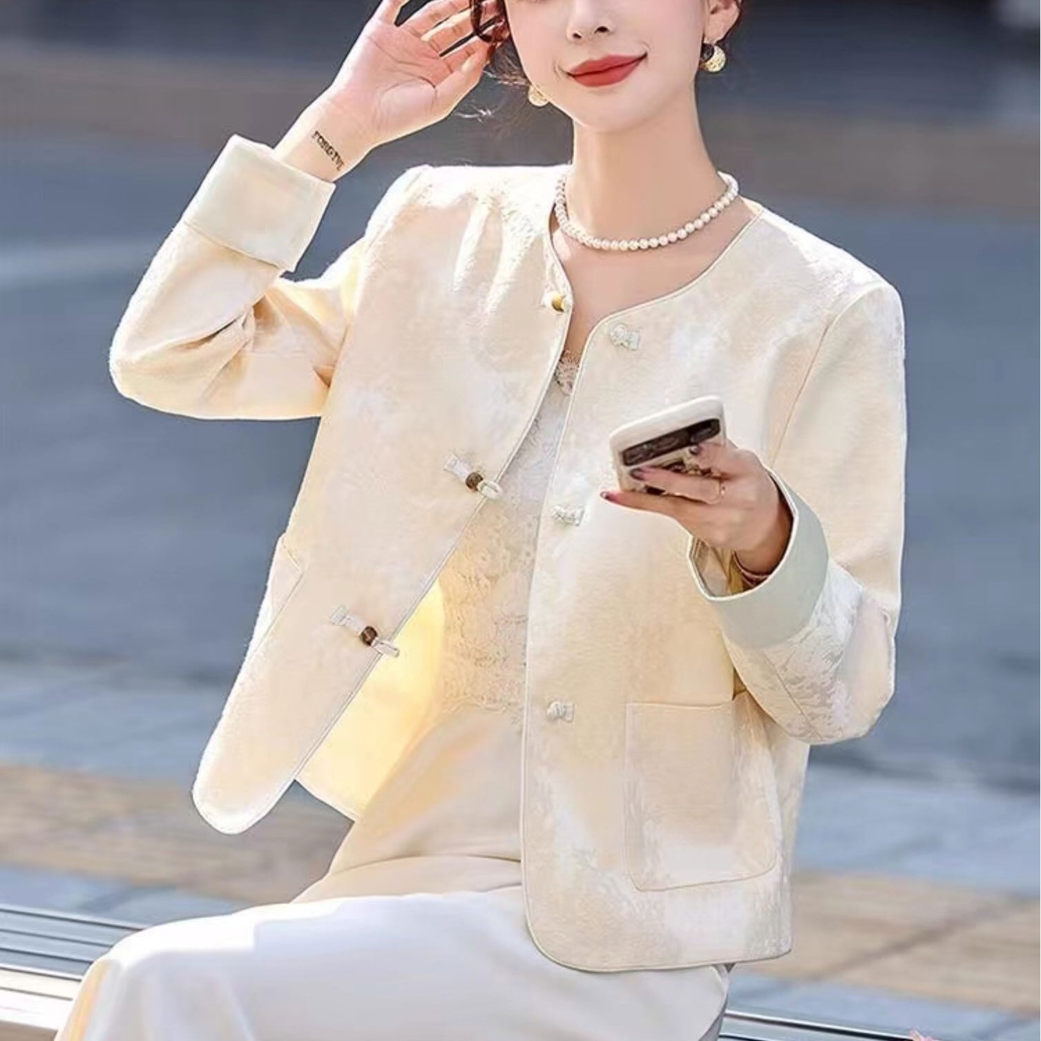チャイナ服 トップス 長袖 襟なし ジャケット エレガント 上品な風合い ポケットあり チャイナボタン zt643