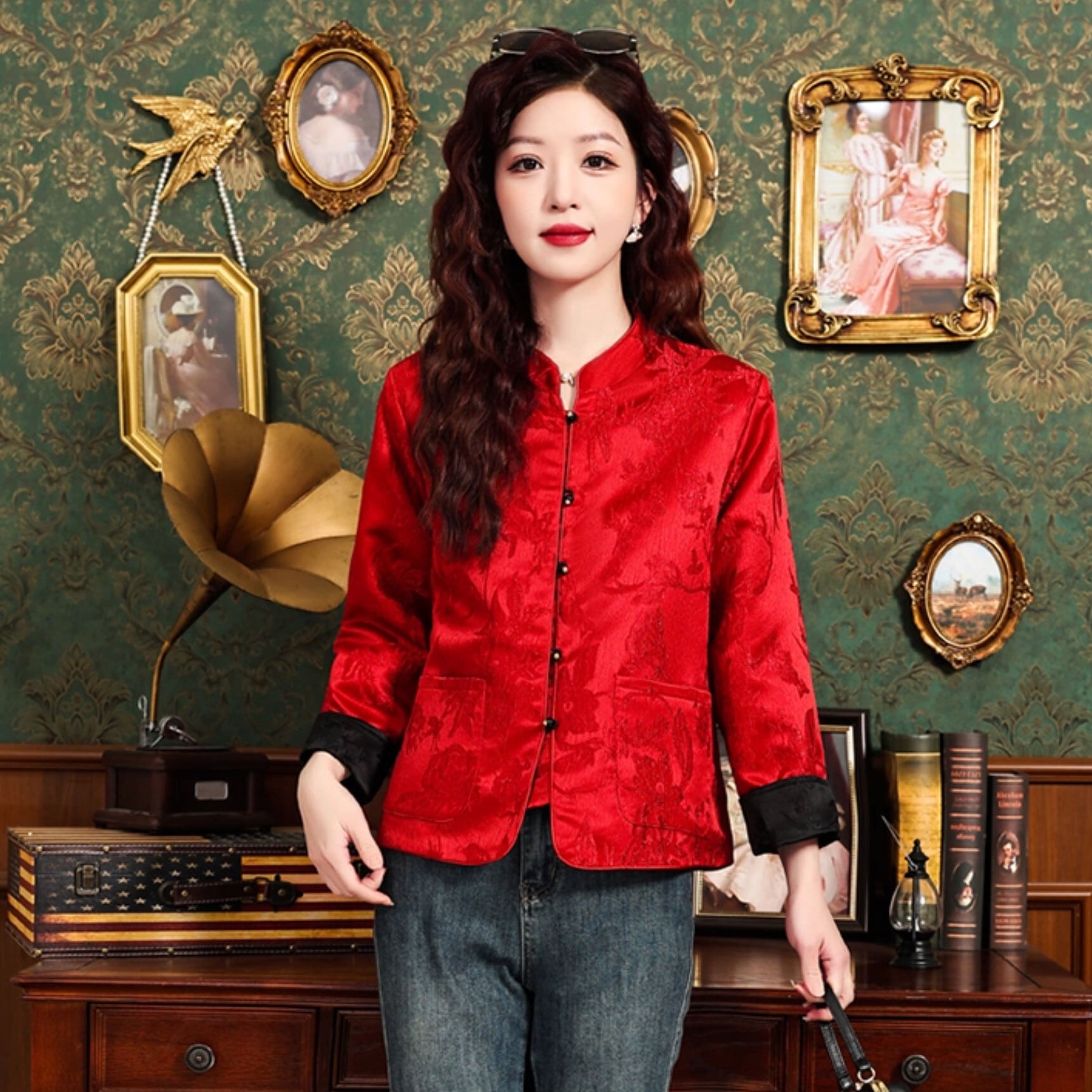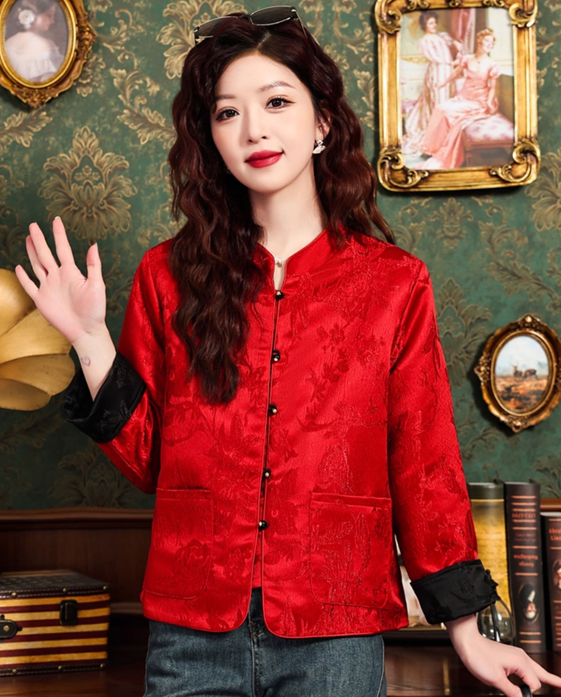 チャイナ服 トップス 秋冬 リバーシブル チャイナジャケット エレガント 長袖 普段着チャイナ zt649