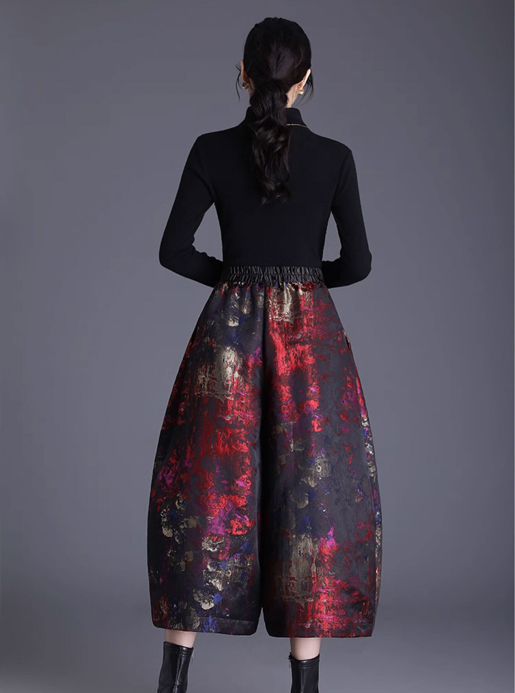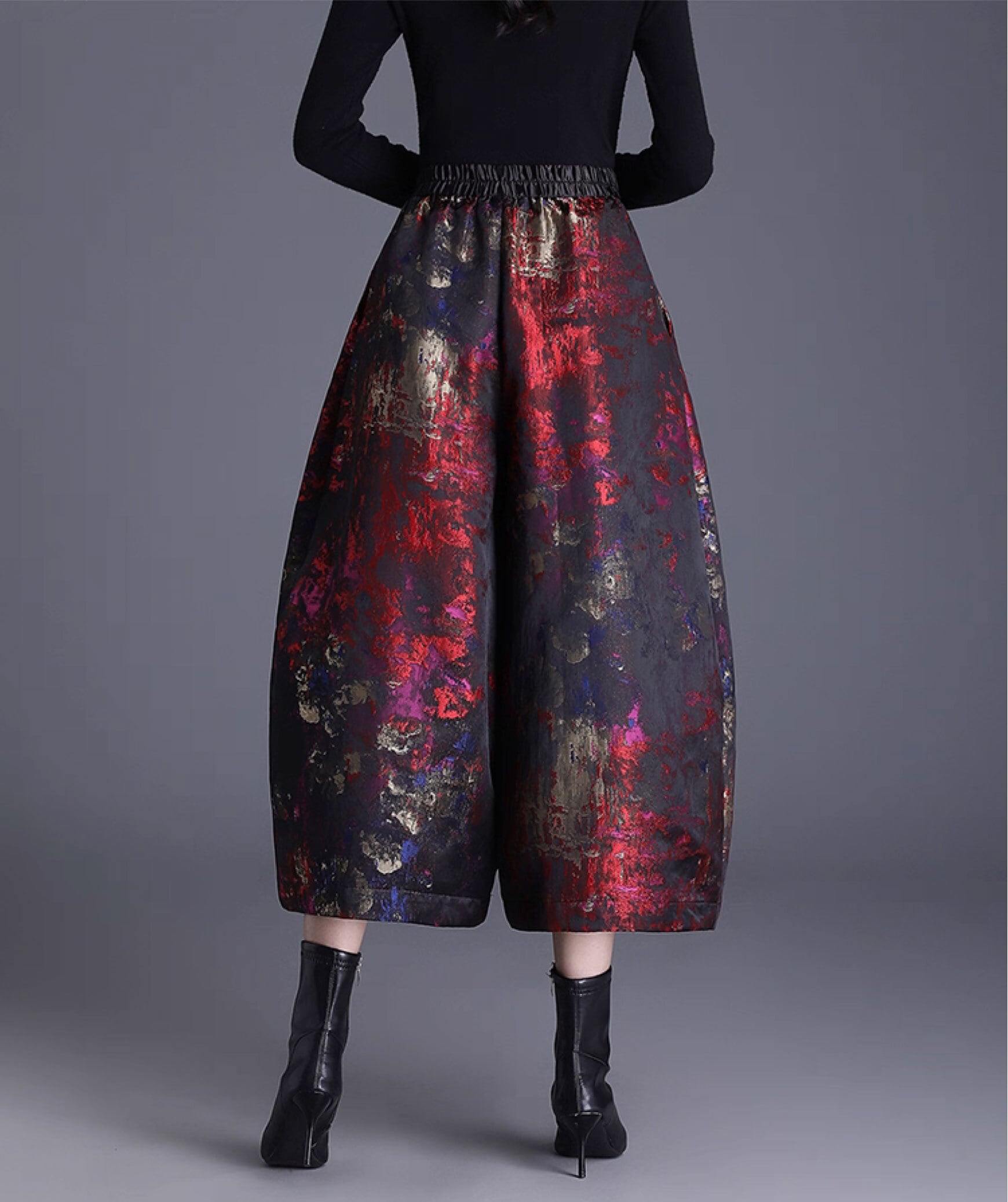 チャイナ服 ワイドパンツ ゆったり 九分丈 総柄 落ち着いた雅な風合い チャイナトップスと相性がいいチャイナパンツ zb263