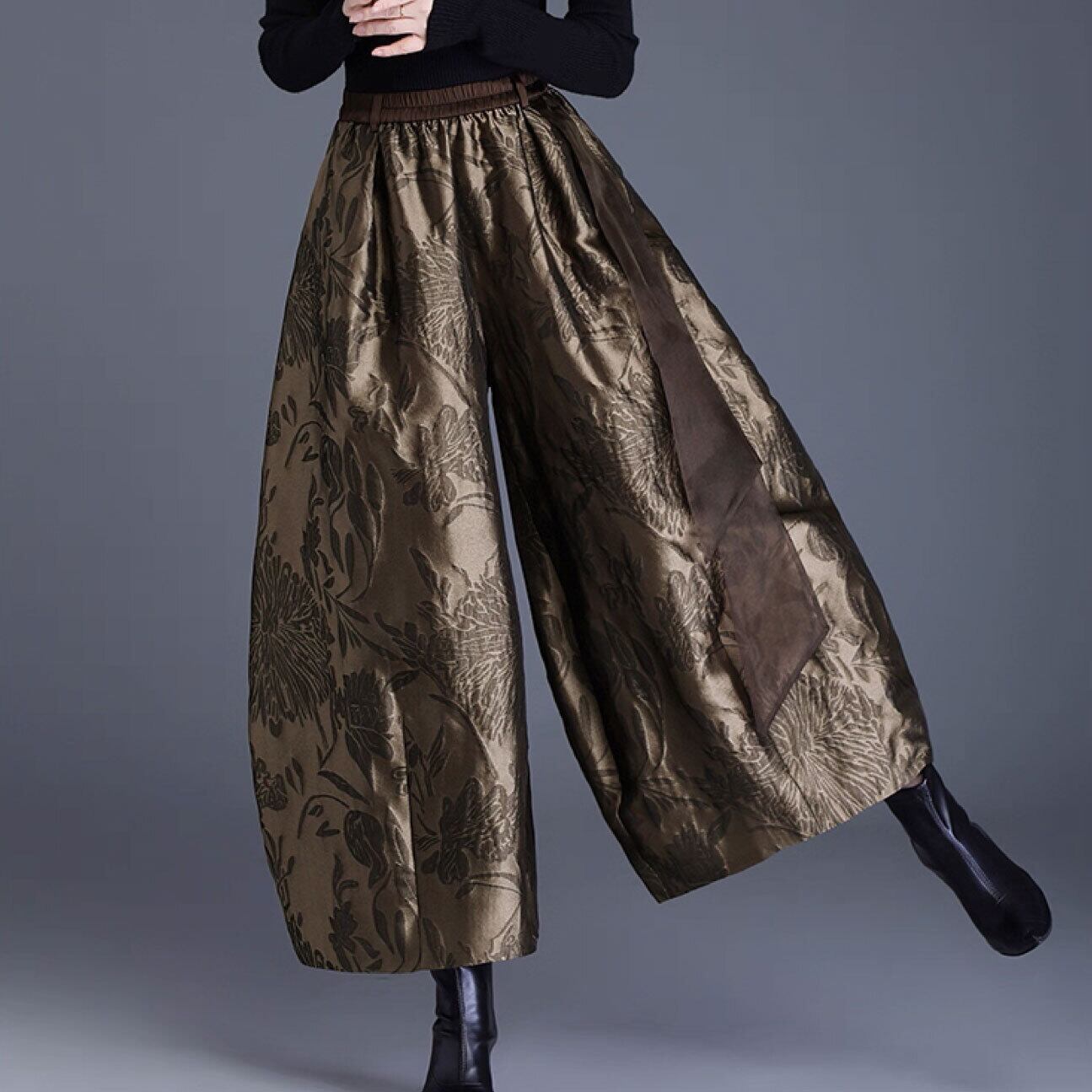 チャイナ服 ワイドパンツ ゆったり 九分丈 総柄 落ち着いた雅な風合い チャイナトップスと相性がいいチャイナパンツ zb264