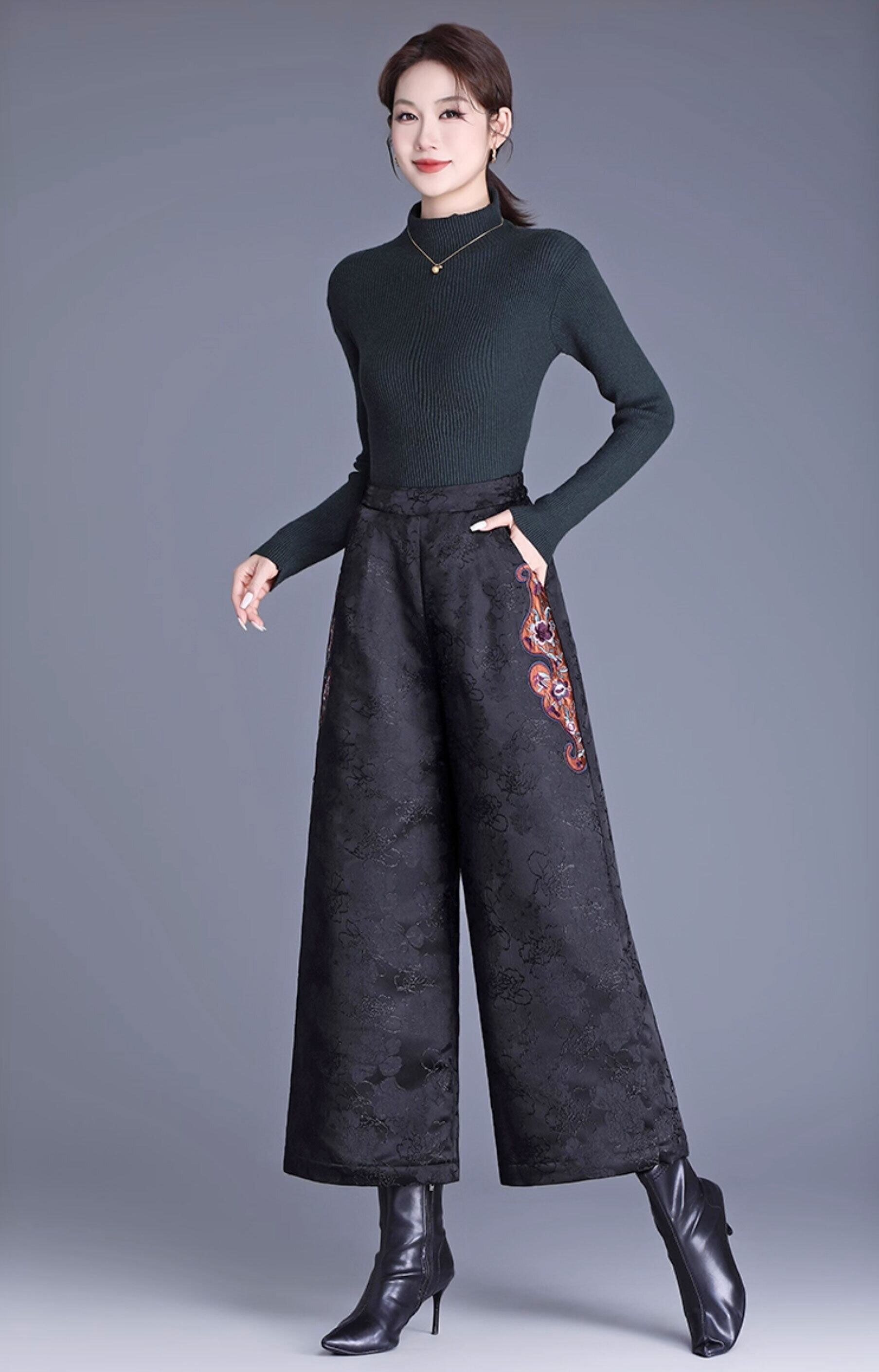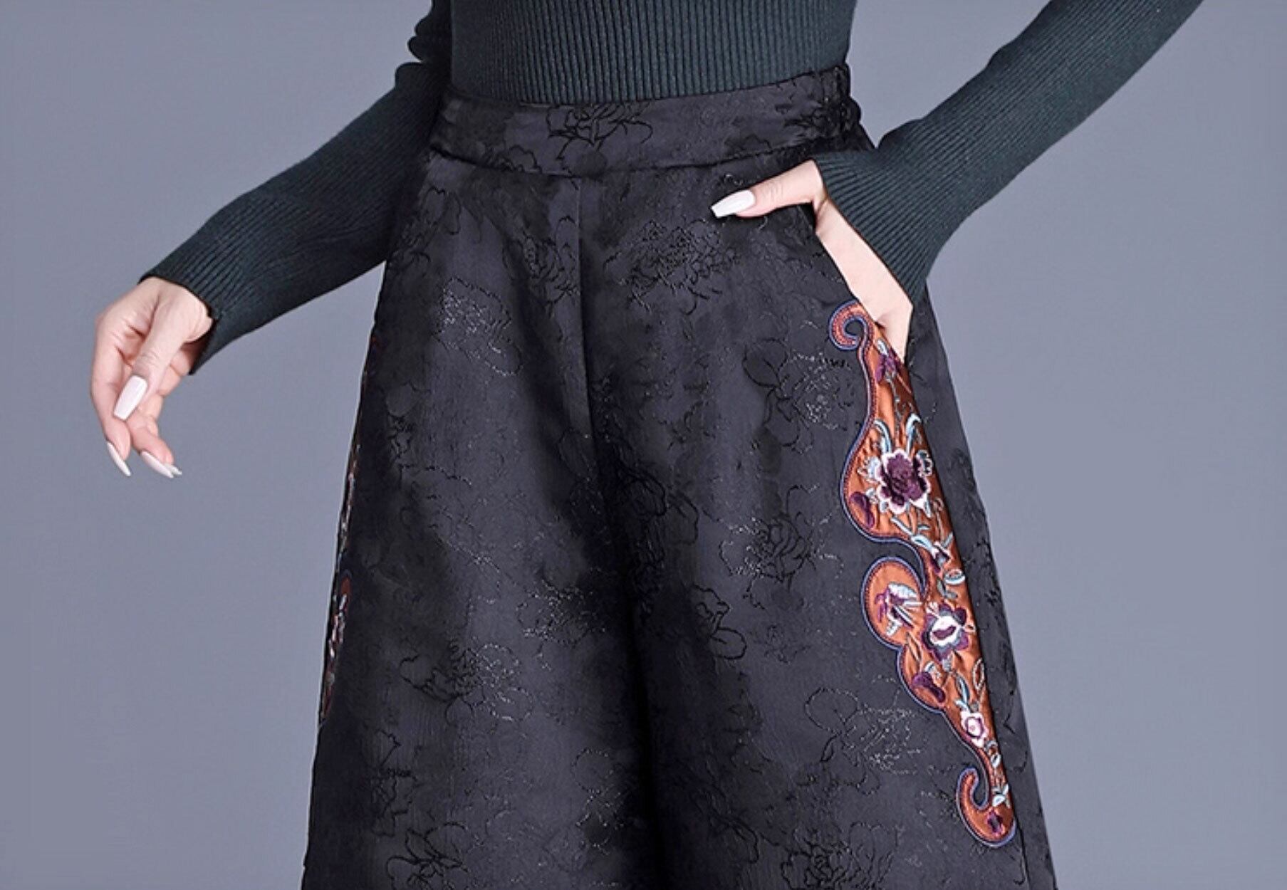 トップスも普段着も揃うチャイナ服専門店chaiです。こちらはチャイナ服 ワイドパンツ 秋冬厚め チャイナパンツ 九分丈 刺繍 ゆったり 上品な風合い チャイナトップスと相性がいいチャイナパンツ zb271の商品ページです。刺繍の素敵な厚めの九分丈ワイドパンツで、秋冬のチャイナファッションのボトムスにぴったりのアイテムです。