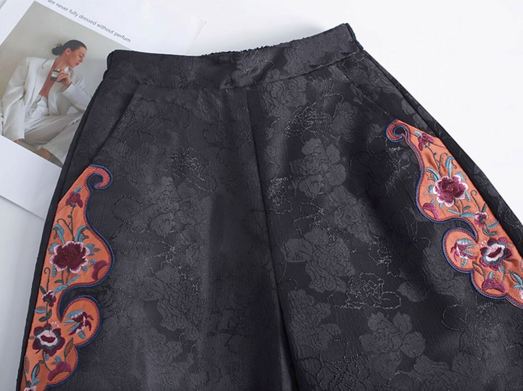 チャイナ服 ワイドパンツ 秋冬厚め チャイナパンツ 九分丈 刺繍 ゆったり 上品な風合い チャイナトップスと相性がいいチャイナパンツ zb271