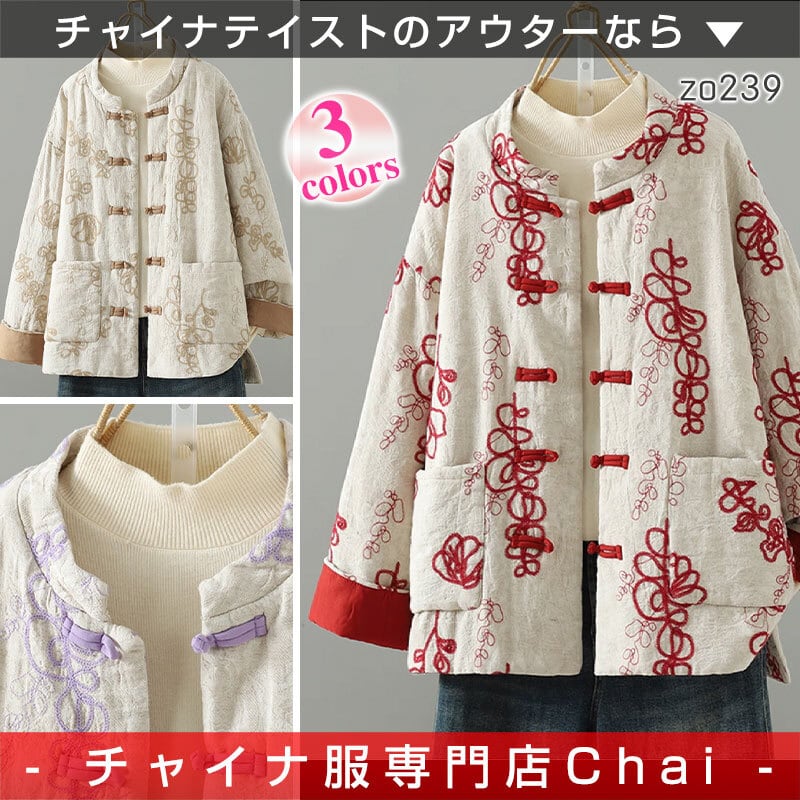 トップスも普段着も揃うチャイナ服専門店chaiです。こちらはチャイナ服 アウター 秋冬厚手トップス 羽織 素朴な風合い 長袖 zo239の商品ページです。素朴な雰囲気の厚手チャイナトップスで、秋冬のチャイナファッションにちょうどよいアイテムです。