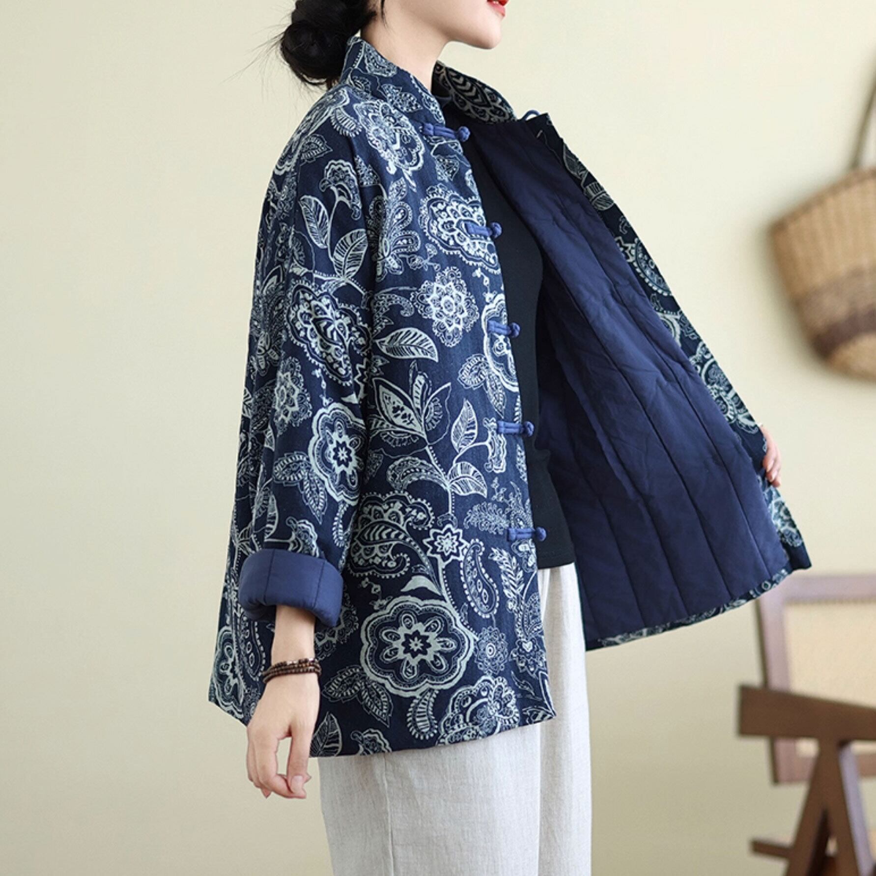 チャイナ服 アウター 秋冬厚手トップス 羽織 総柄 長袖 zo242
