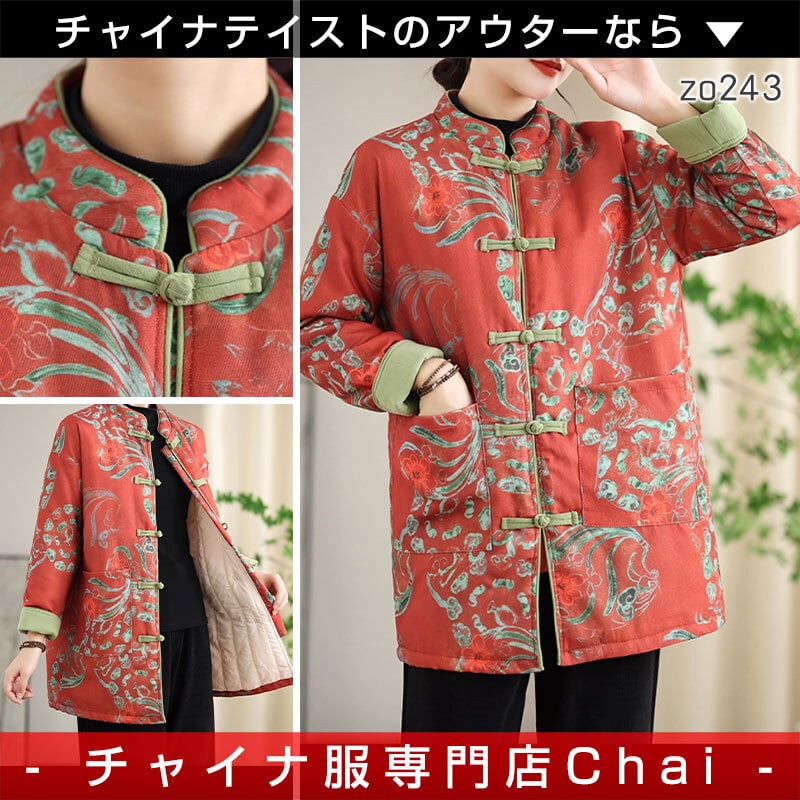 トップスも普段着も揃うチャイナ服専門店chaiです。こちらはチャイナ服 アウター 秋冬厚手トップス 羽織 総柄 長袖 zo243の商品ページです。素朴な雰囲気の厚手チャイナトップスで、秋冬のチャイナファッションにちょうどよいアイテムです。
