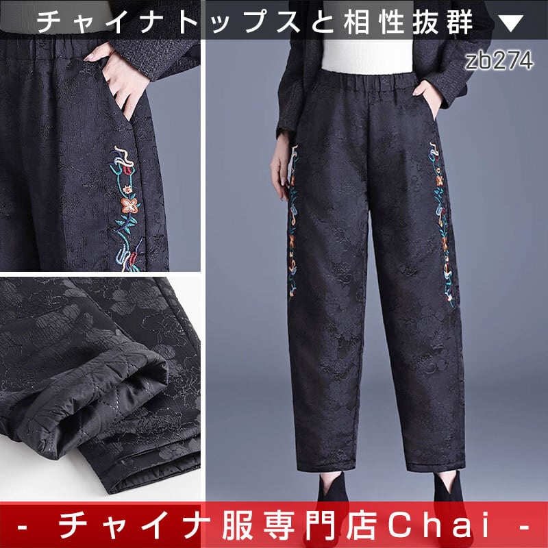 トップスも普段着も揃うチャイナ服専門店chaiです。こちらはチャイナ服 ストレートパンツ 秋冬厚め サイド刺繍 チャイナパンツ ウエストゴム 上品な風合い チャイナトップスと相性がいいチャイナパンツ zb274の商品ページです。上品な風合いの厚めストレートパンツで、秋冬のチャイナファッションのボトムスにぴったりのアイテムです。