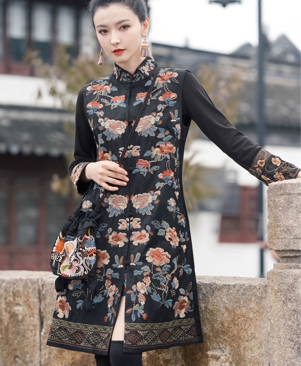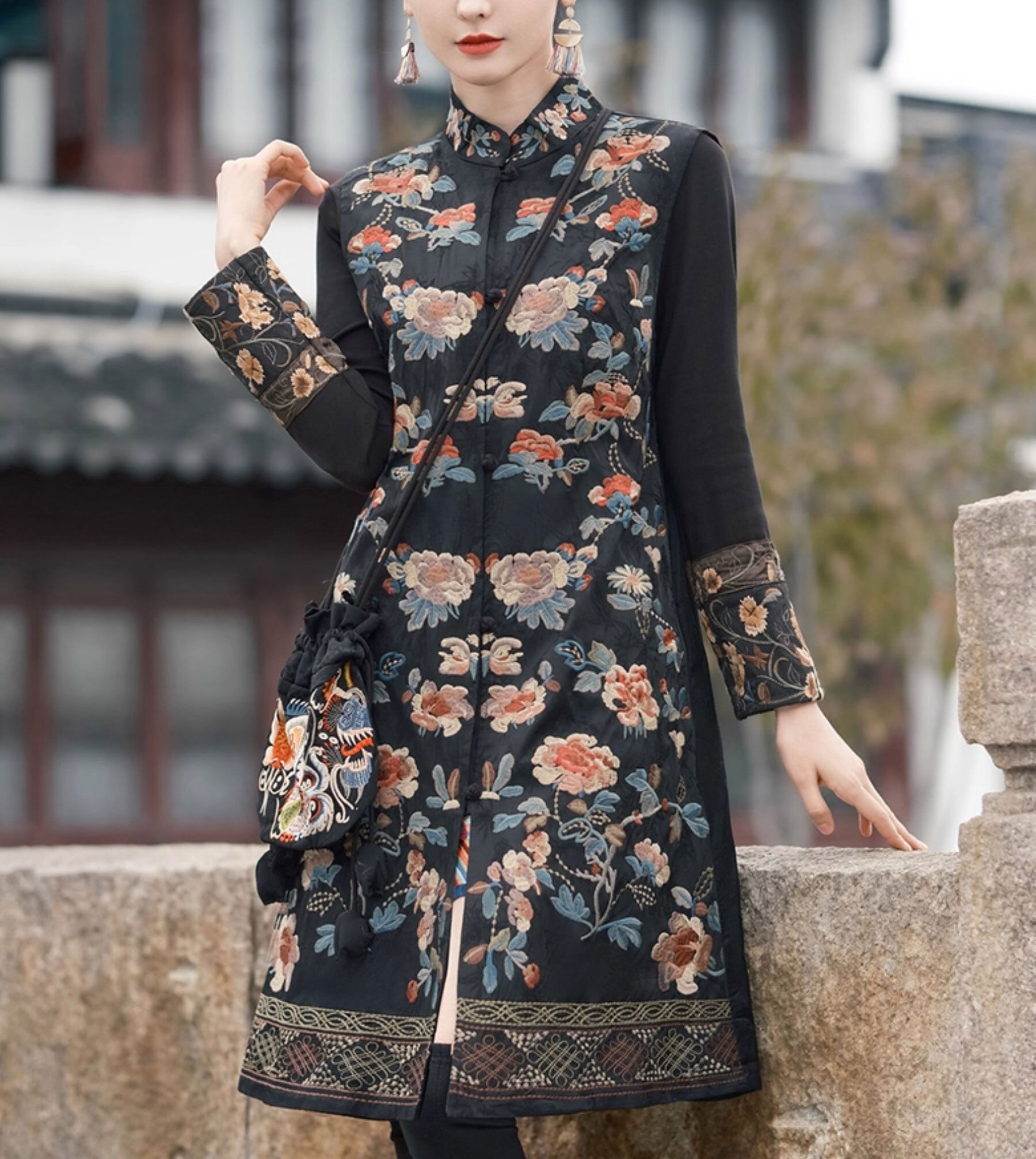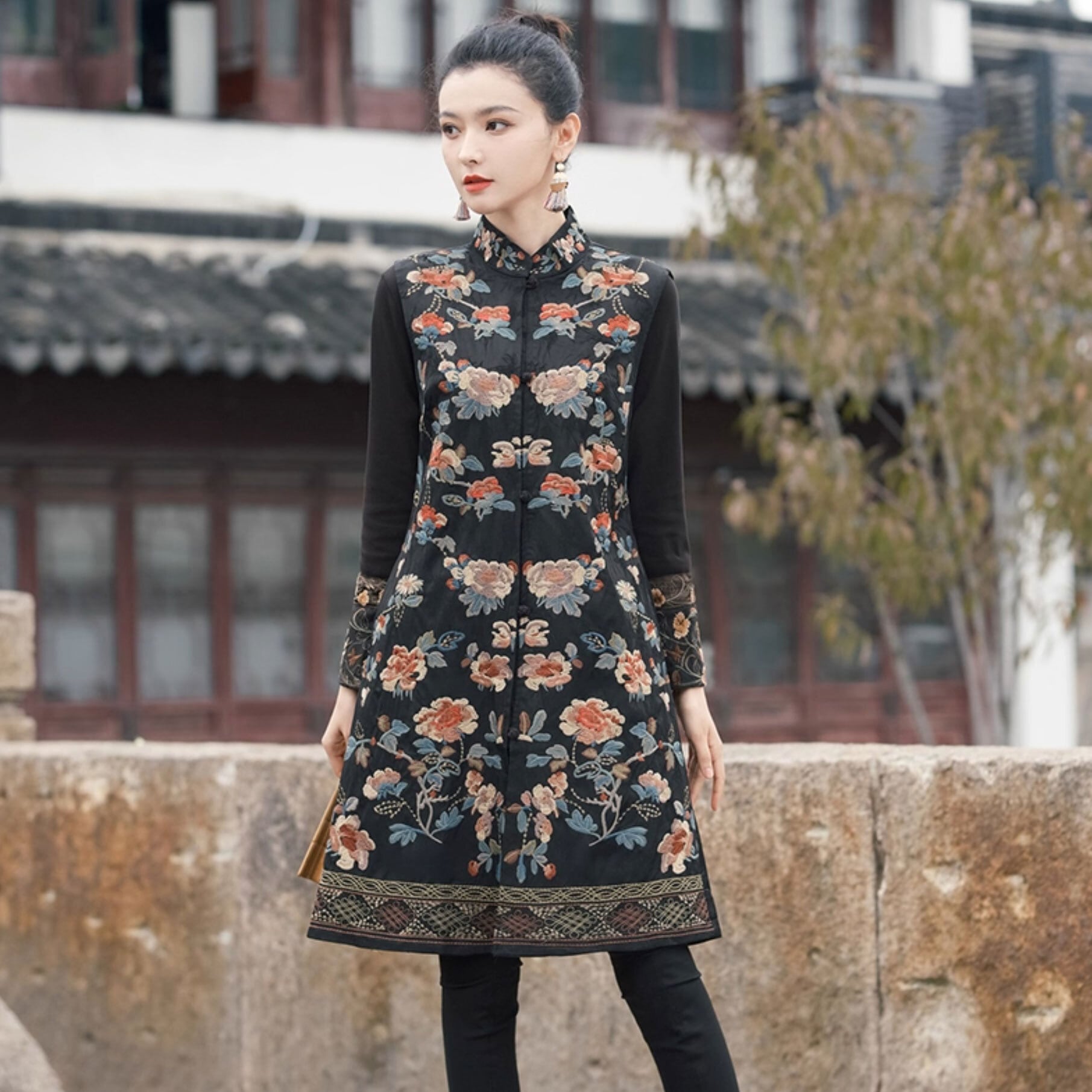 チャイナ服 トップス 凝った刺繍 ノースリーブ ロング丈 上品 重ね着にちょうどいい 普段着 民族衣装 zv102