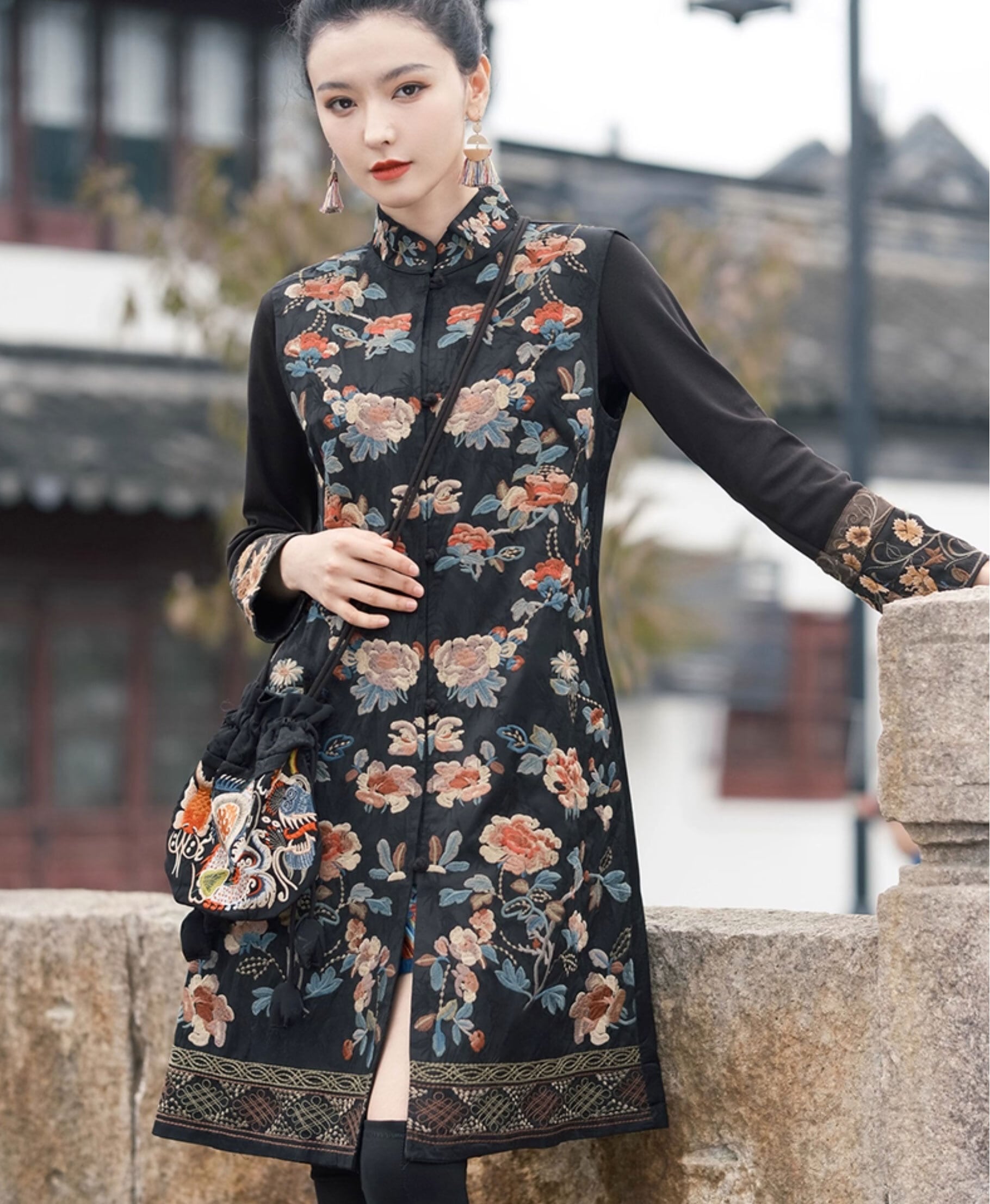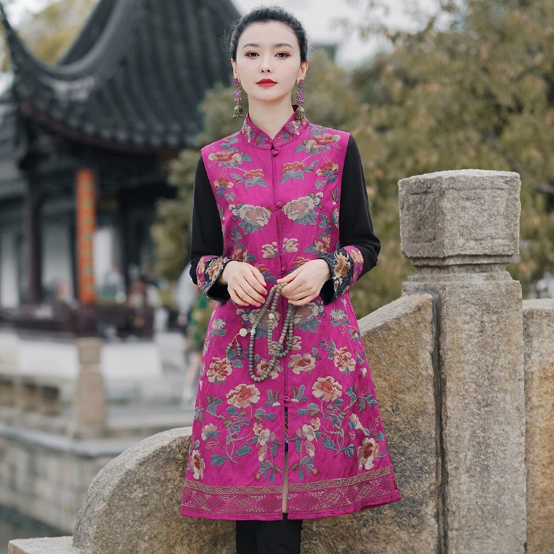 トップスも普段着も揃うチャイナ服専門店chaiです。こちらはチャイナ服 トップス 凝った刺繍 ノースリーブ ロング丈 上品 重ね着にちょうどいい 普段着 民族衣装 zv102の商品ページです。凝った刺繍が素敵なチャイナベストで、チャイナファッションの重ね着にぴったりのアイテムです。