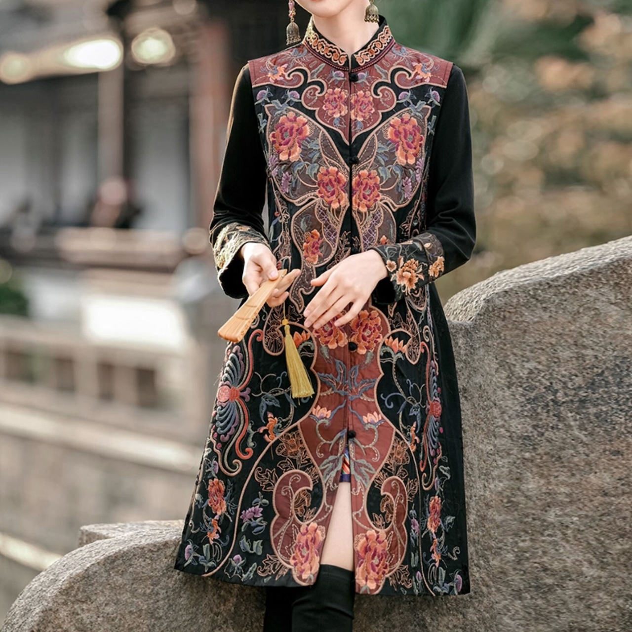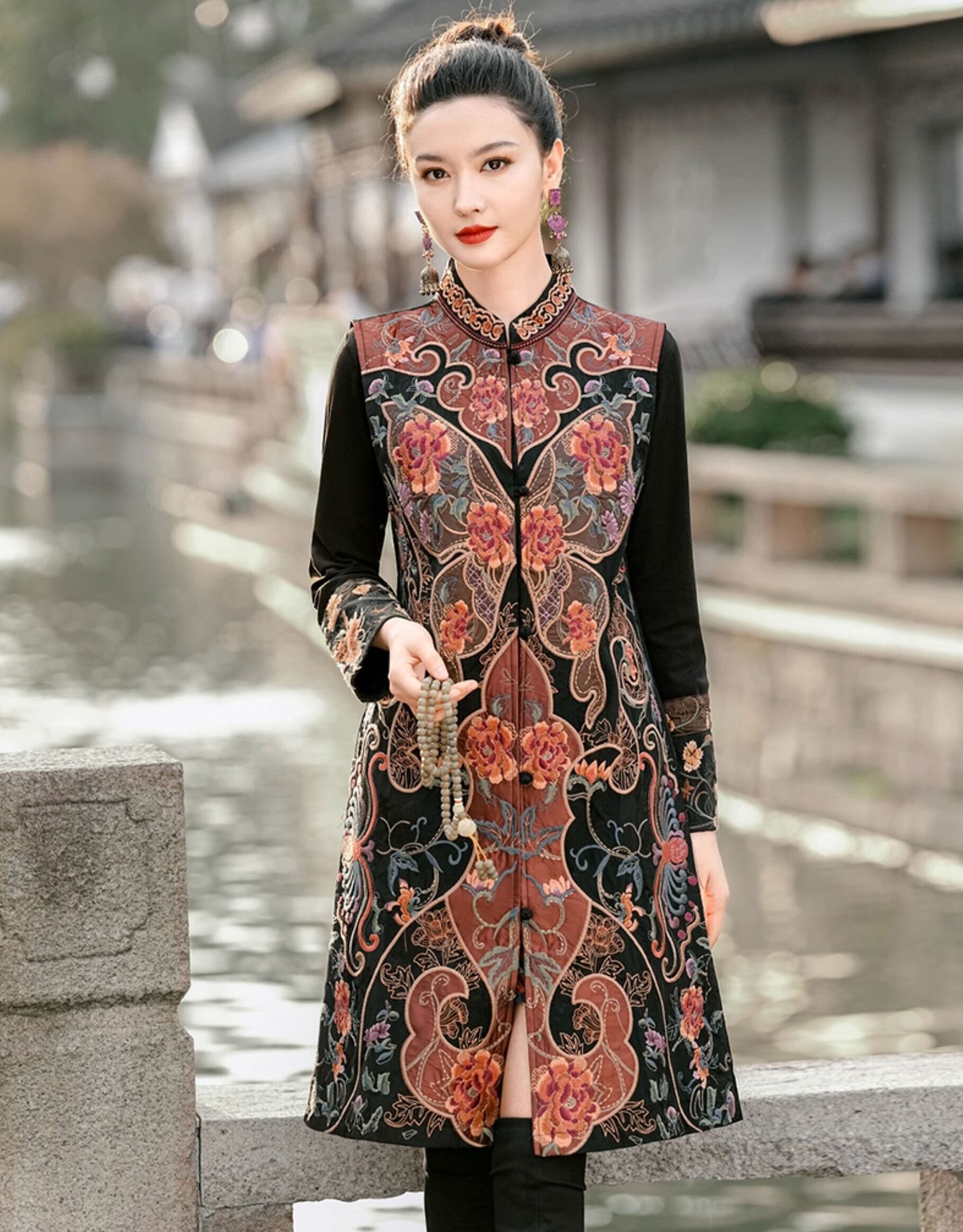 チャイナ服 トップス 凝った刺繍 ノースリーブ ロング丈 上品 重ね着にちょうどいい 普段着 民族衣装 zv103