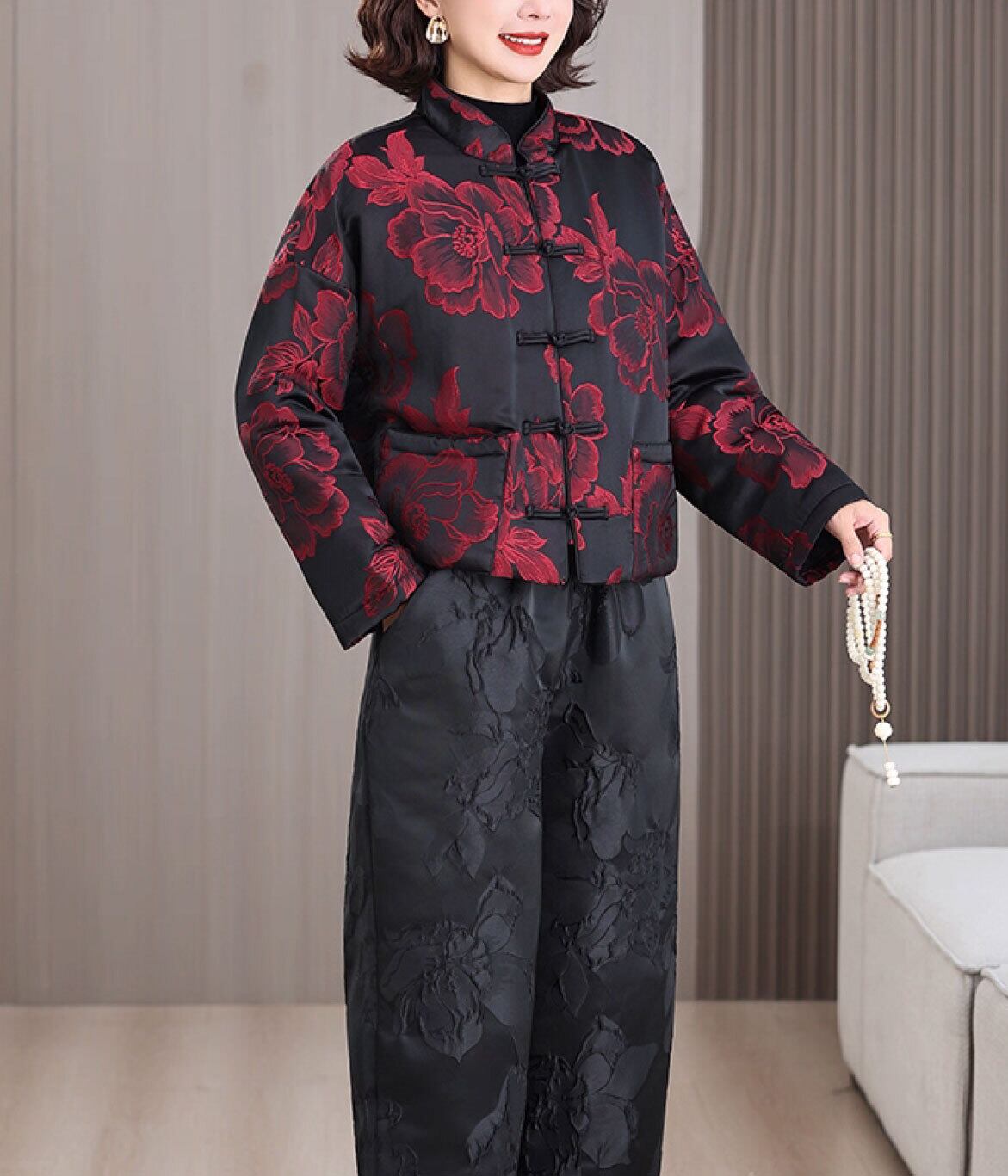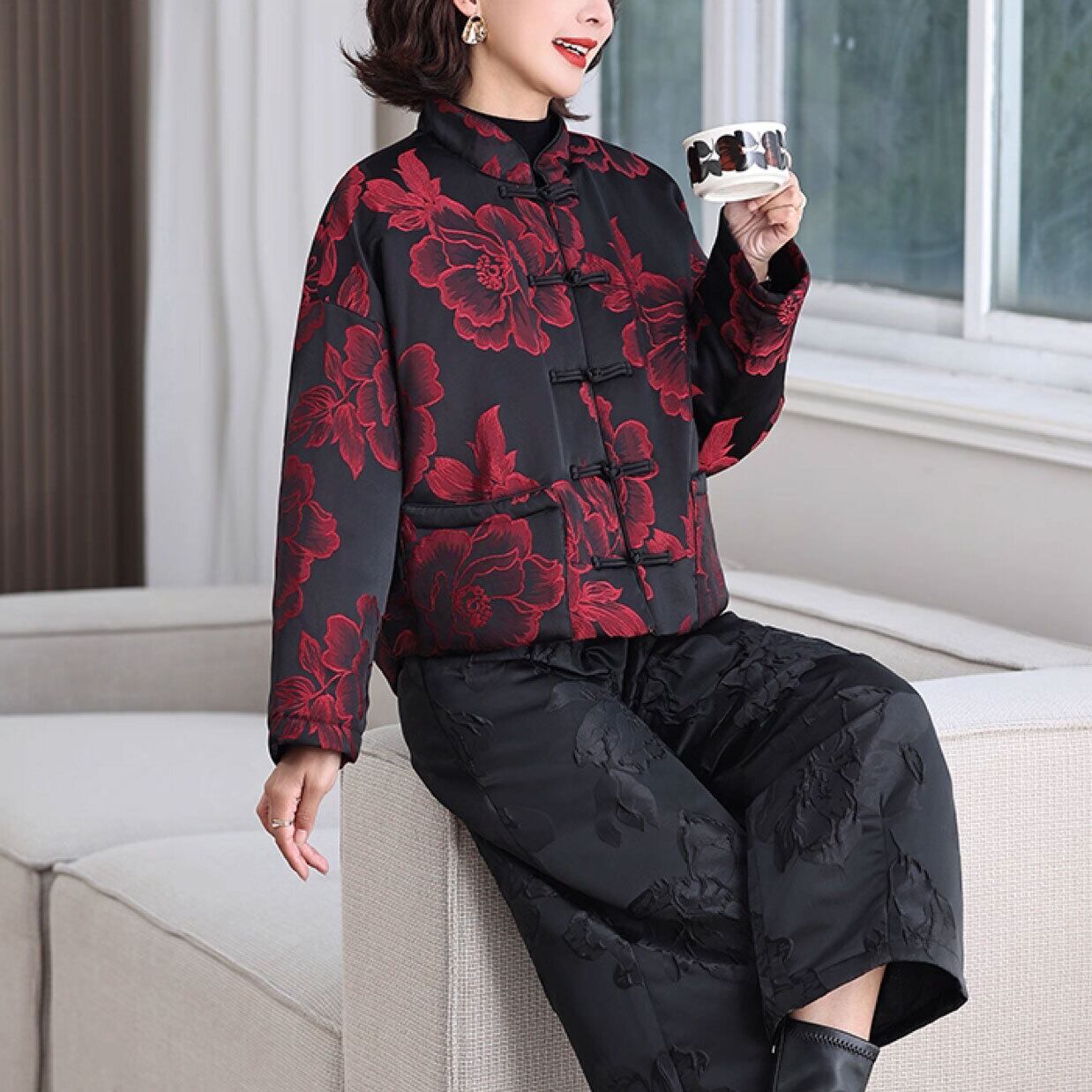 チャイナ服 アウター 秋冬厚手トップス 防寒 花柄 長袖 チャイナジャケット 普段着チャイナ zo250