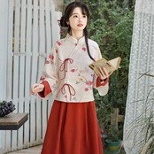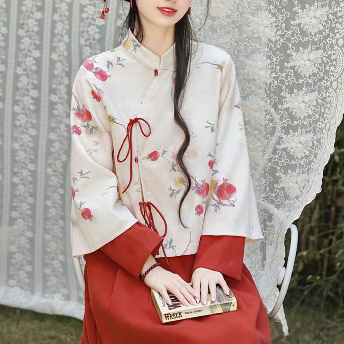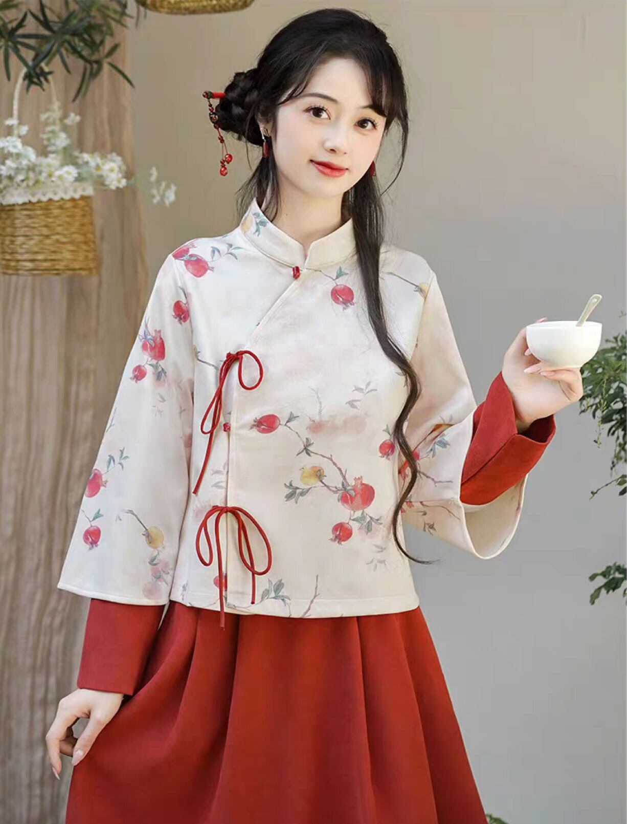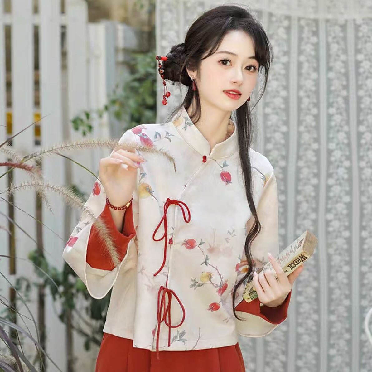 チャイナ服 トップス 秋冬 長袖 重ね着風袖 素朴 落ち着いた風合い セットでも買える 普段着チャイナ zt657