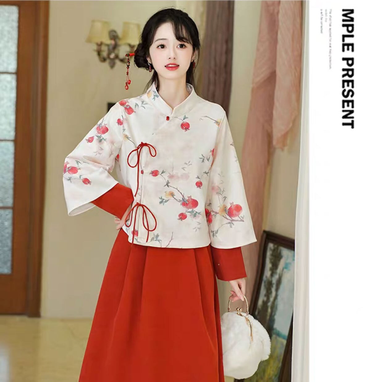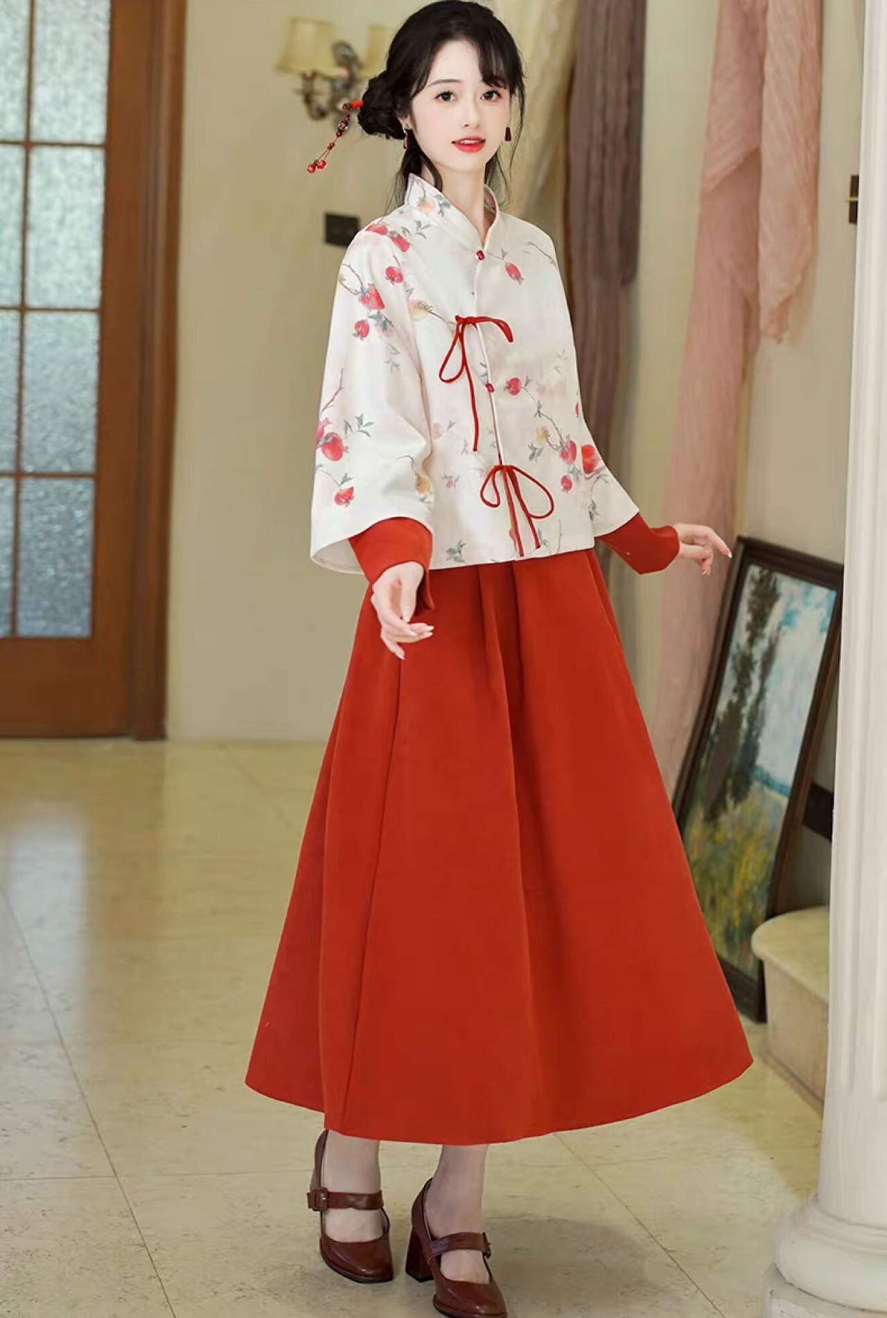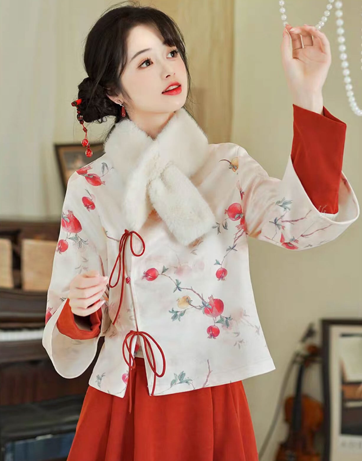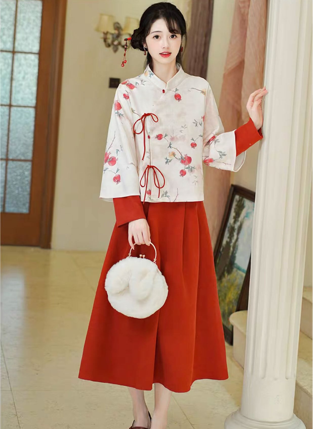 チャイナ服 トップス 秋冬 長袖 重ね着風袖 素朴 落ち着いた風合い セットでも買える 普段着チャイナ zt657