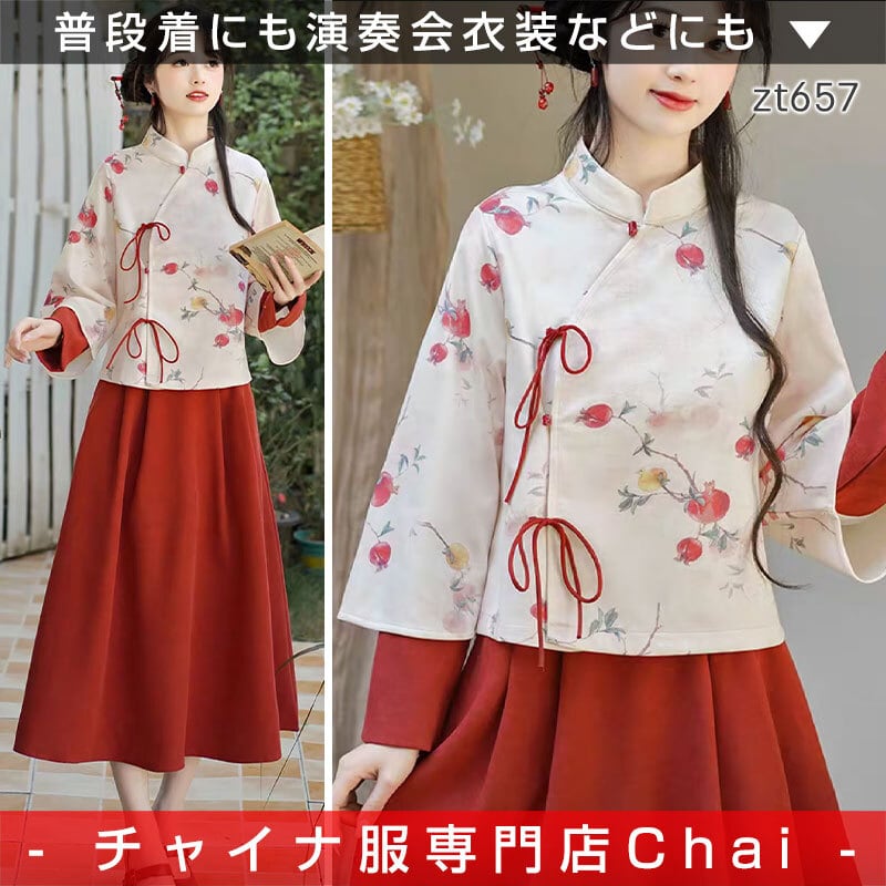 トップスも普段着も揃うチャイナ服専門店chaiです。こちらはチャイナ服 トップス 秋冬 長袖 重ね着風袖 上品な風合い セットでも買える エレガント 普段着チャイナ zt657の商品ページです。上品な雰囲気のチャイナトップスで、チャイナファッションにちょうどよいアイテムです。