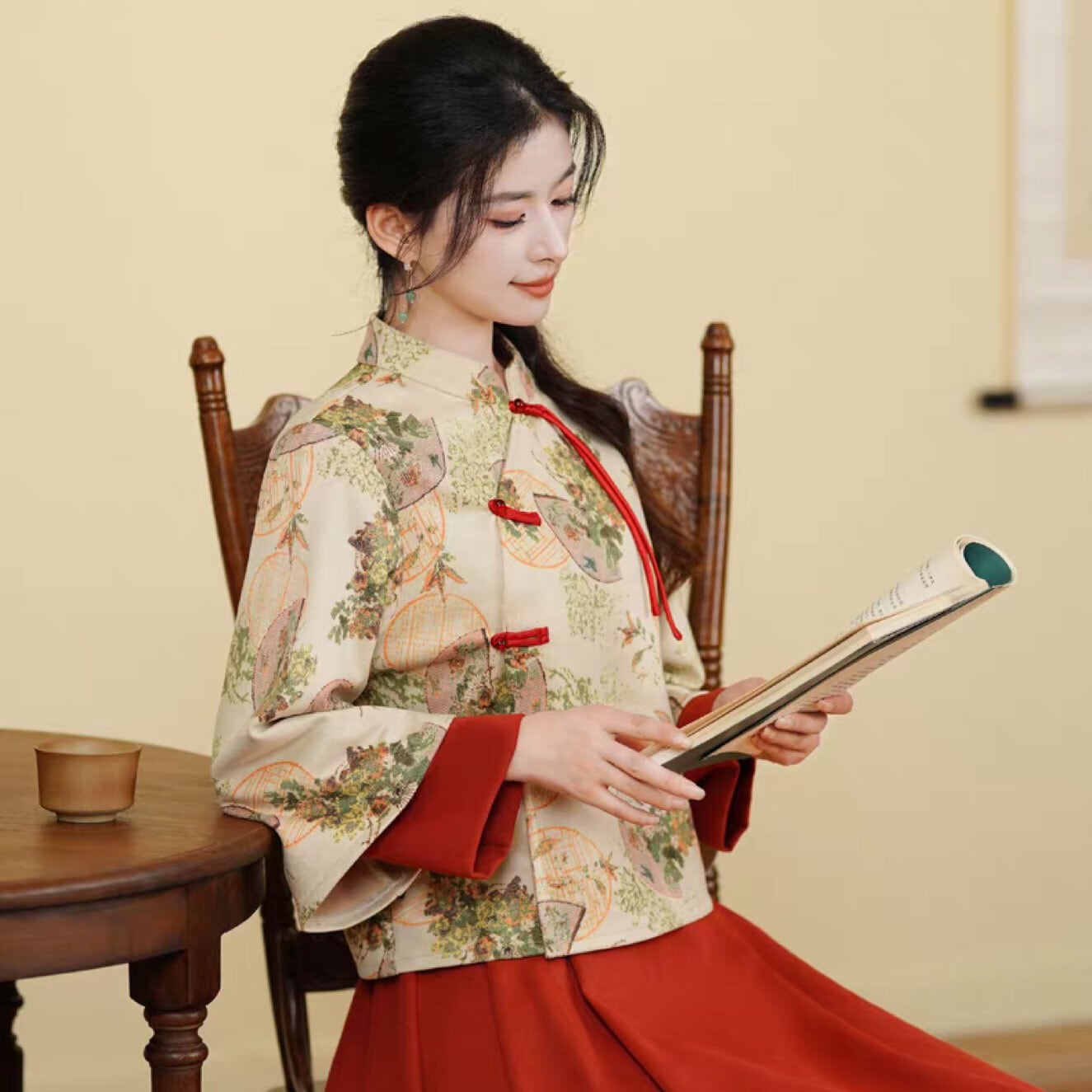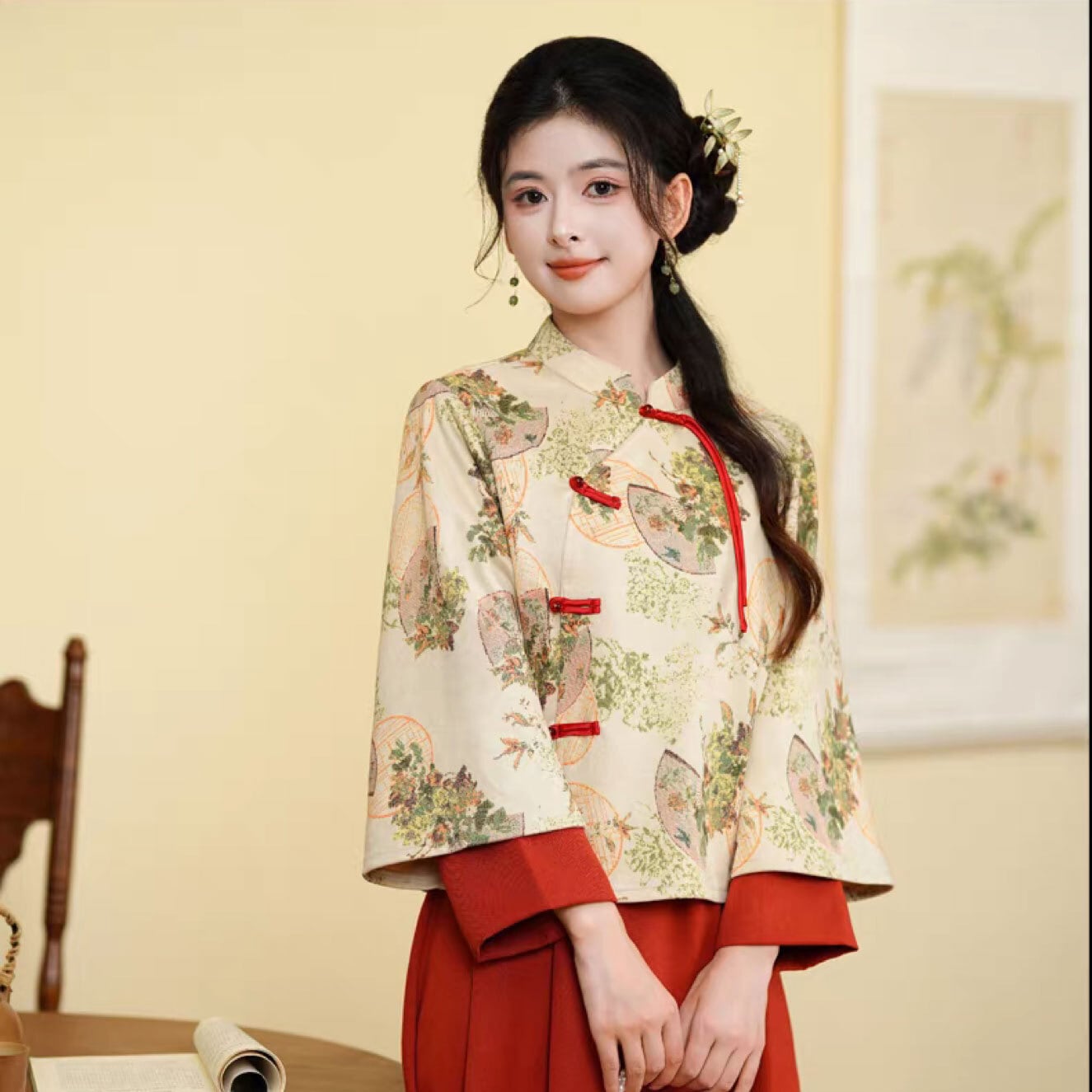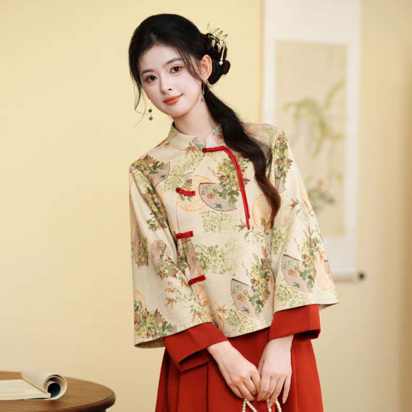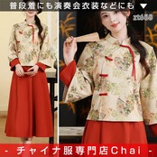 チャイナ服 トップス 秋冬 長袖 重ね着風袖 素朴 落ち着いた風合い セットでも買える 普段着チャイナ zt658