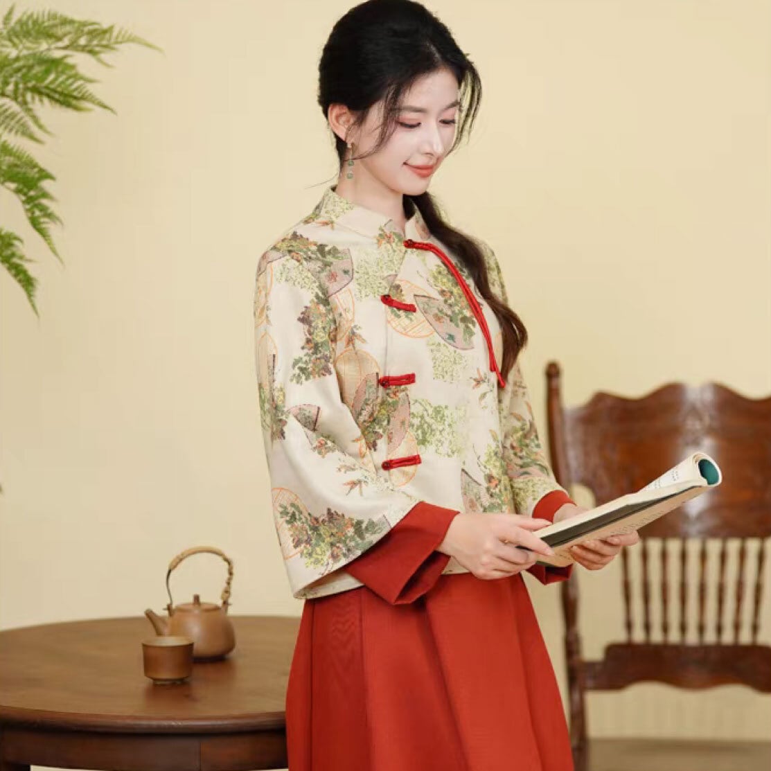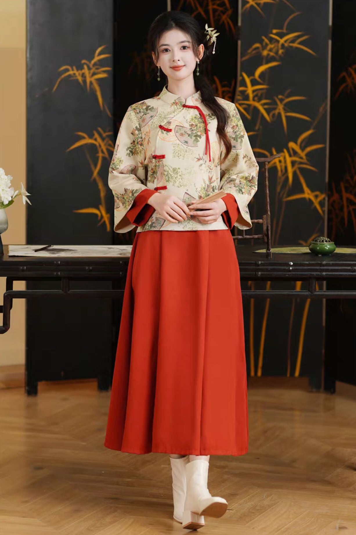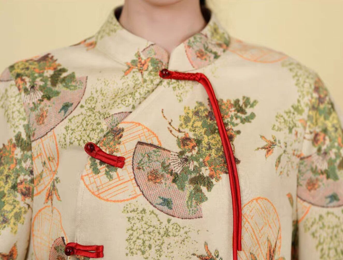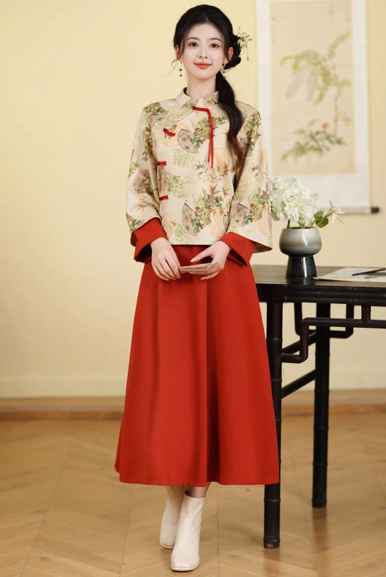 チャイナ服 トップス 秋冬 長袖 重ね着風袖 素朴 落ち着いた風合い セットでも買える 普段着チャイナ zt658