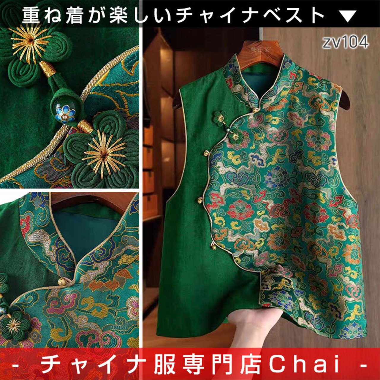 トップスも普段着も揃うチャイナ服専門店chaiです。こちらはチャイナ服 ベスト ノースリーブ ジレ 上品 重ね着にちょうどいいチャイナベスト 普段着 民族衣装 zv104の商品ページです。装飾の素敵なチャイナベストで、チャイナファッションの重ね着にぴったりのアイテムです。