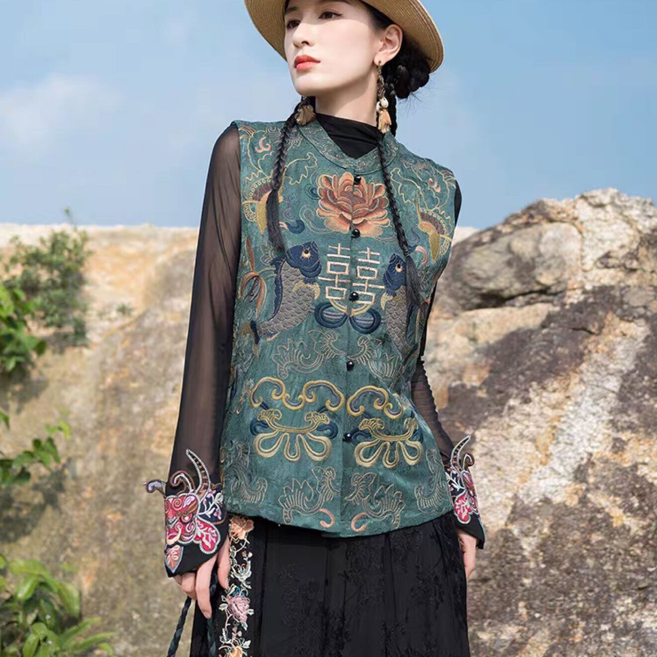 チャイナ服 ベスト 凝った刺繍 ノースリーブ エレガント ジレ 上品 重ね着にちょうどいいチャイナベスト 普段着 民族衣装 zv105