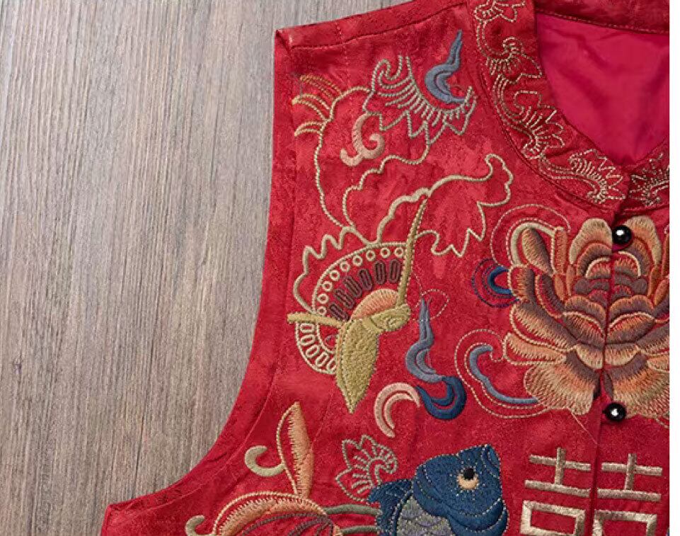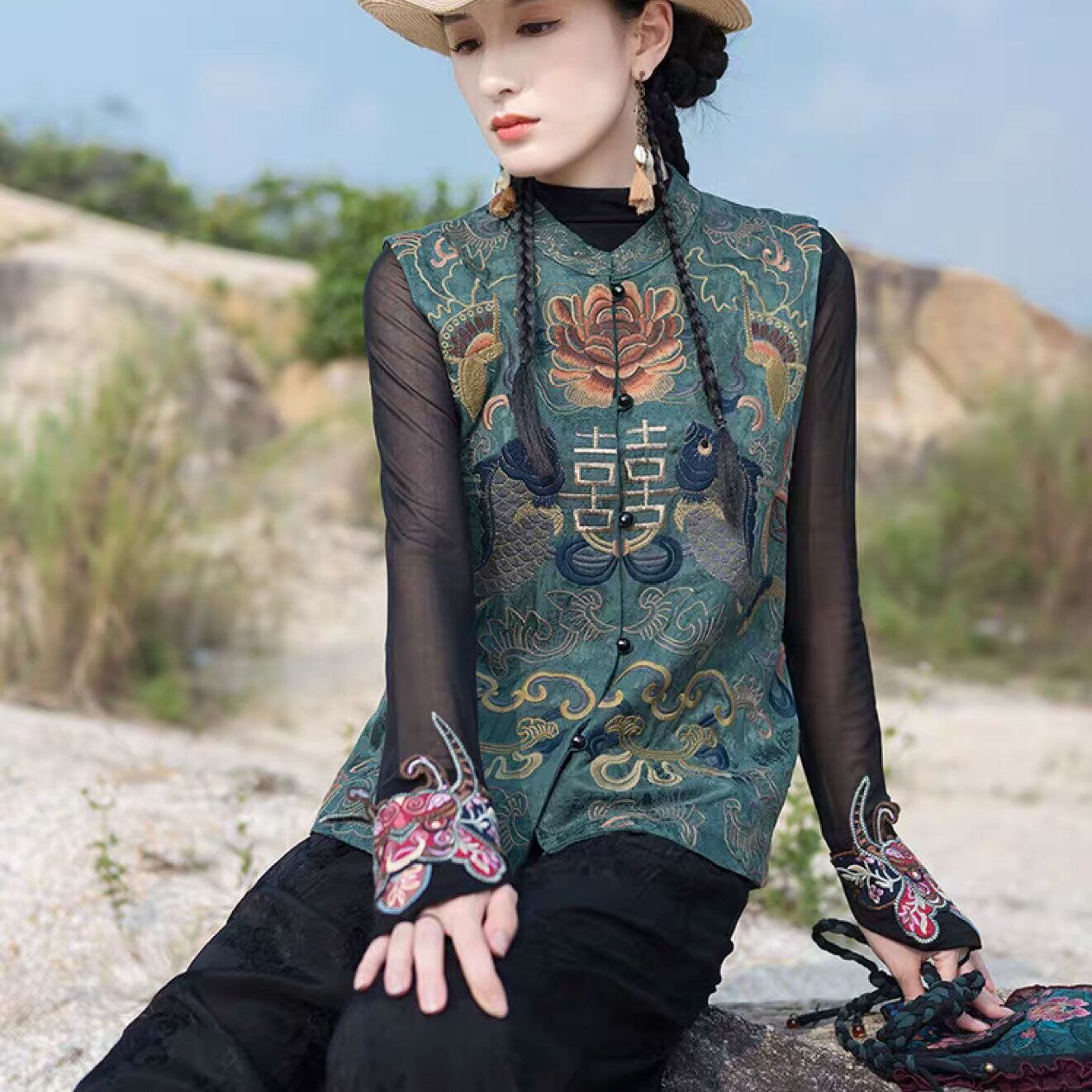 トップスも普段着も揃うチャイナ服専門店chaiです。こちらはチャイナ服 ベスト 凝った刺繍 ノースリーブ エレガント ジレ 上品 重ね着にちょうどいいチャイナベスト 普段着 民族衣装 zv105の商品ページです。刺繍の素敵なチャイナベストで、チャイナファッションの重ね着にぴったりのアイテムです。