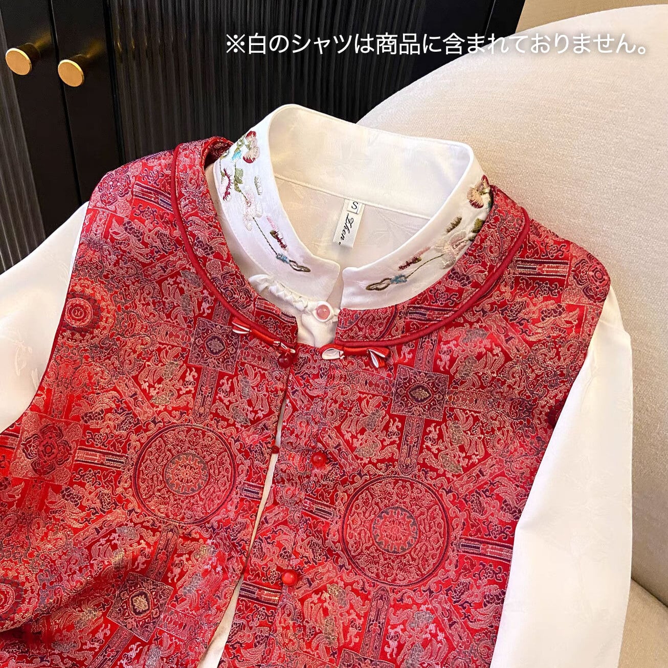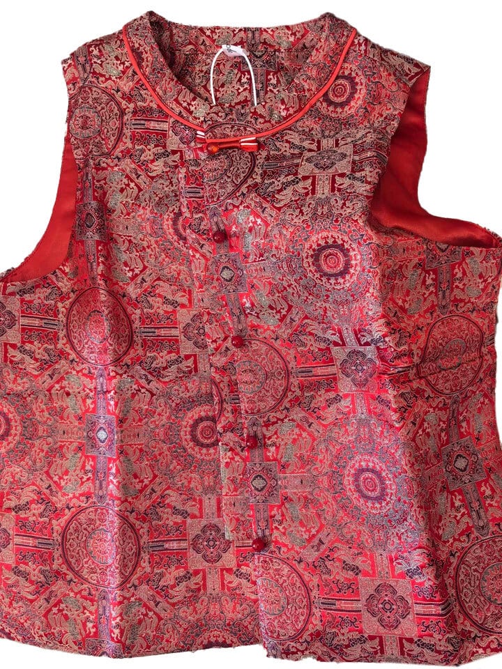 チャイナ服 ベスト エレガント 刺繍 レッド 上品で華やかな風合い ノースリーブ 重ね着にちょうどいいジレ 普段着チャイナ zv108