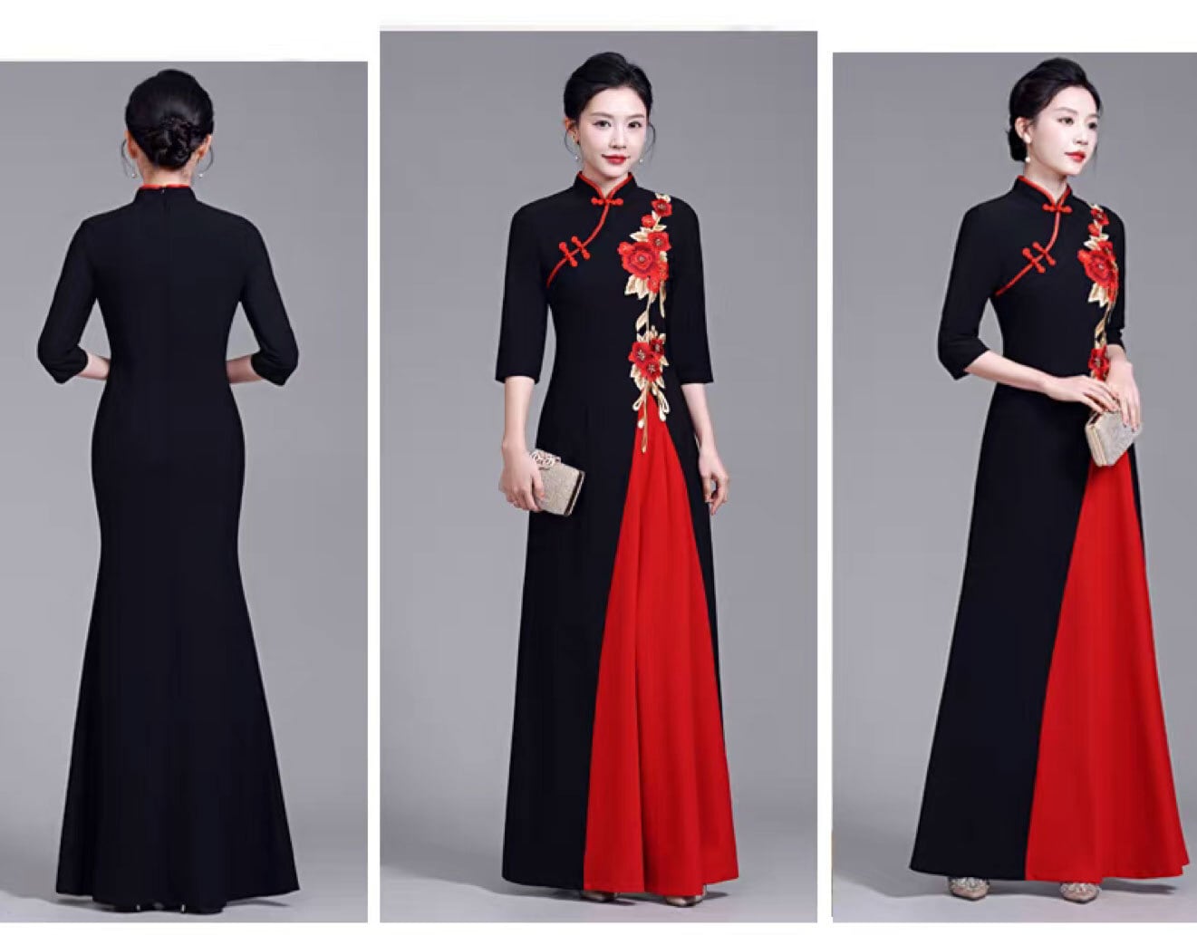 トップスも普段着も揃うチャイナ服専門店chaiです。こちらはチャイナドレス ワンピース 赤黒バイカラー 七分袖 刺繍 マキシ丈 パーティードレス 中国衣装 zl493の商品ページです。赤黒のバイカラーのマキシ丈ワンピで、チャイナファッションにぴったりなアイテムです。
