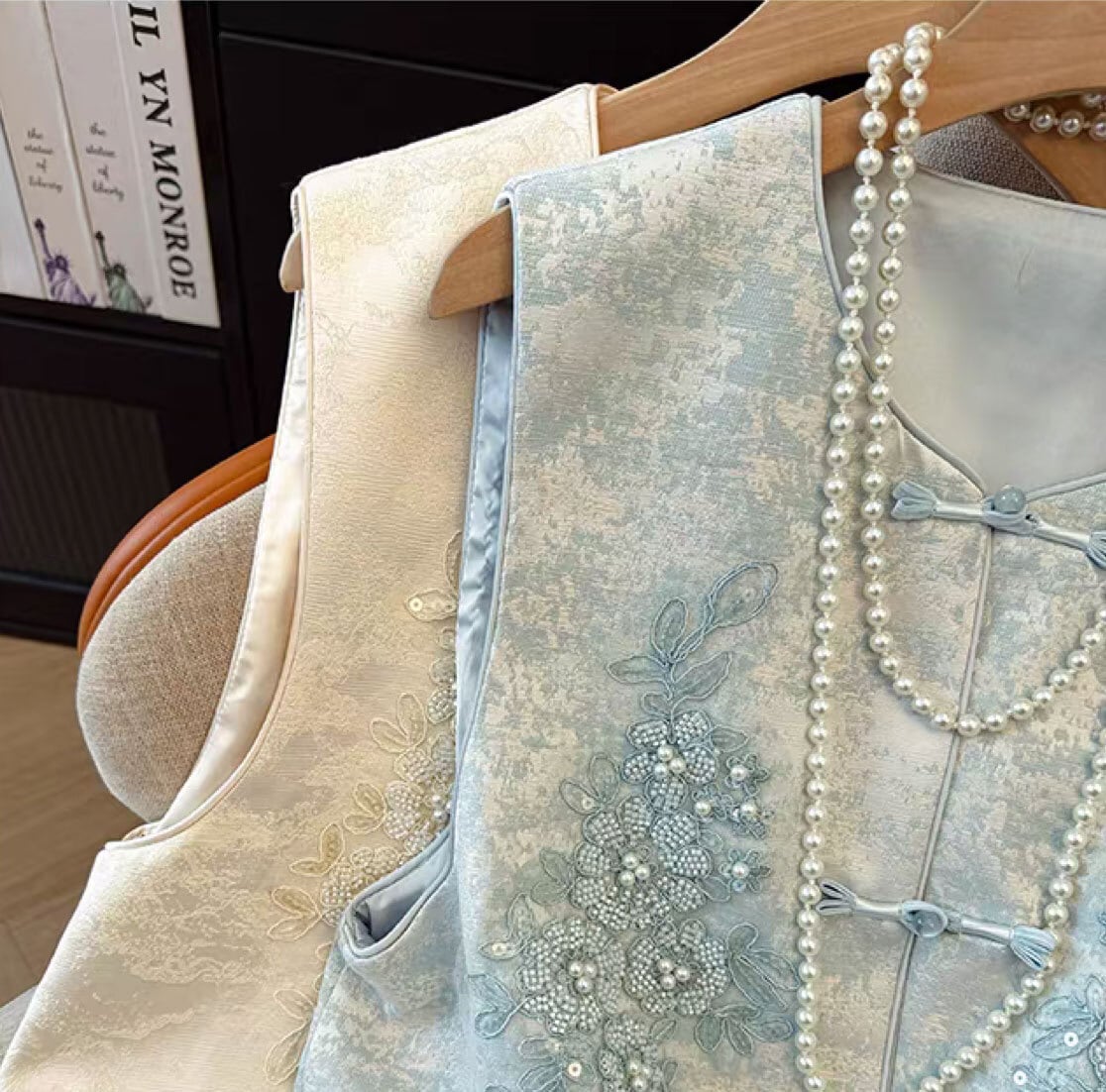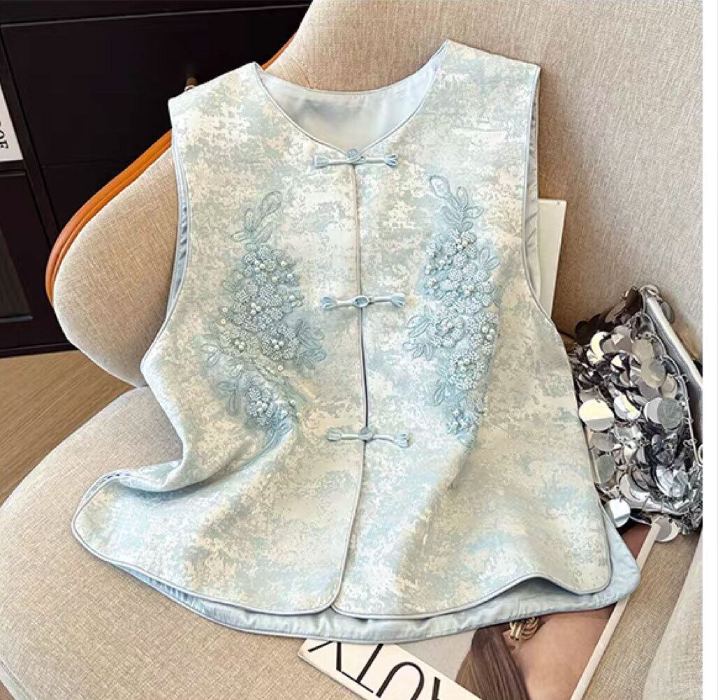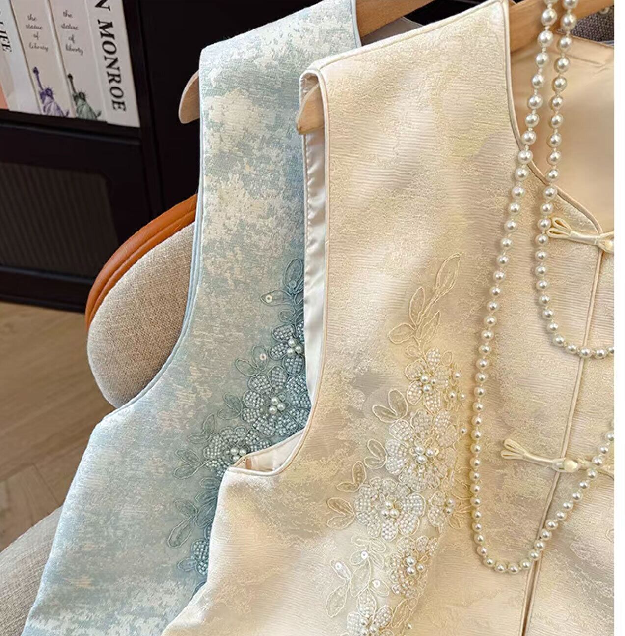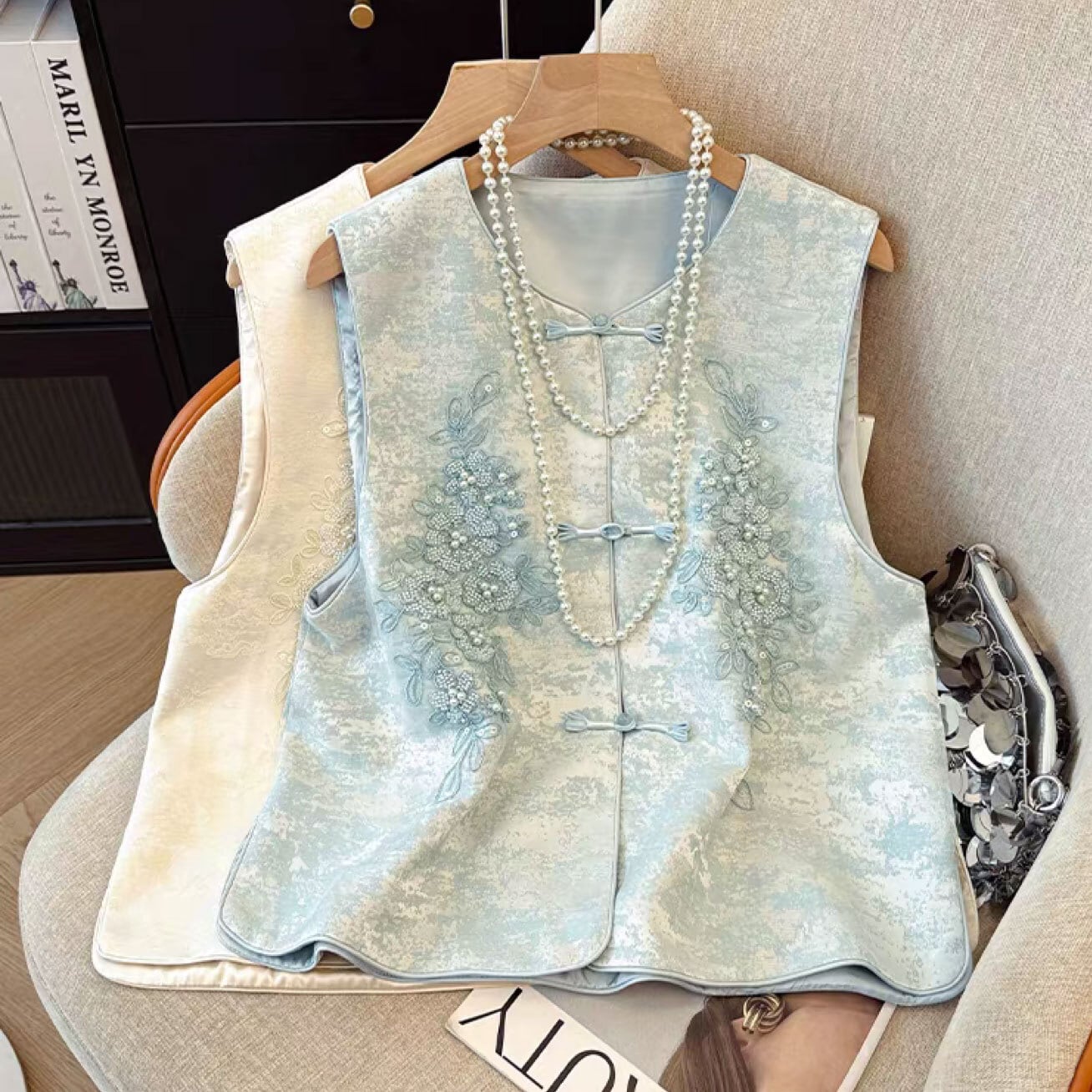 チャイナ服 ベスト エレガント ビーズ 爽やかな風合い ノースリーブ 重ね着にちょうどいいジレ 普段着チャイナ zv110