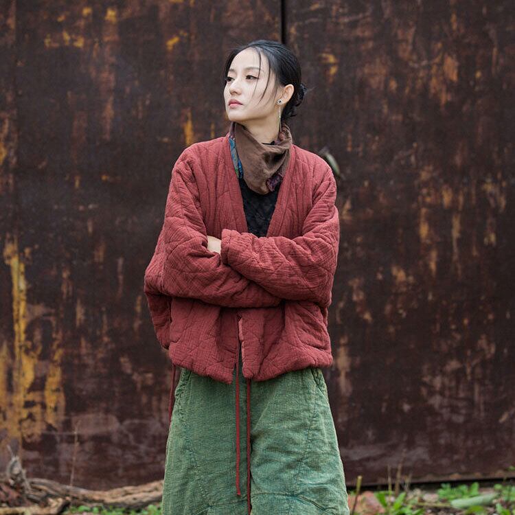 チャイナ服 アウター 秋冬厚めトップス 中綿防寒 素朴 落ち着いた風合い チャイナジャケット 普段着チャイナ zo252