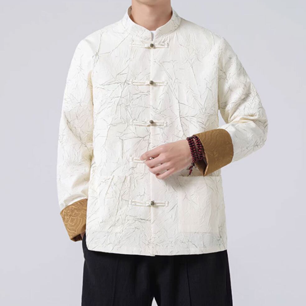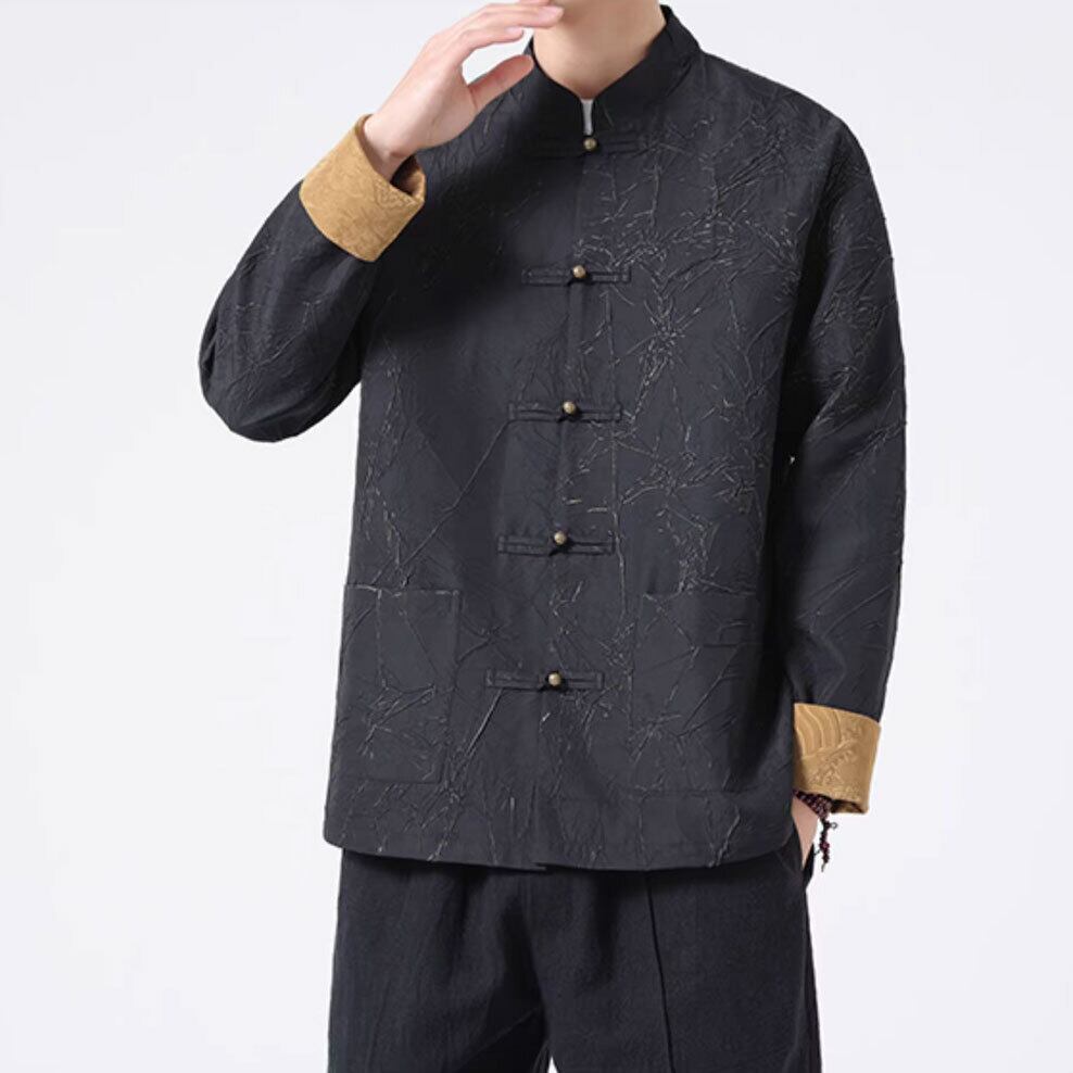チャイナ服 メンズ 長袖トップス 袖口バイカラー 男性用 mt26