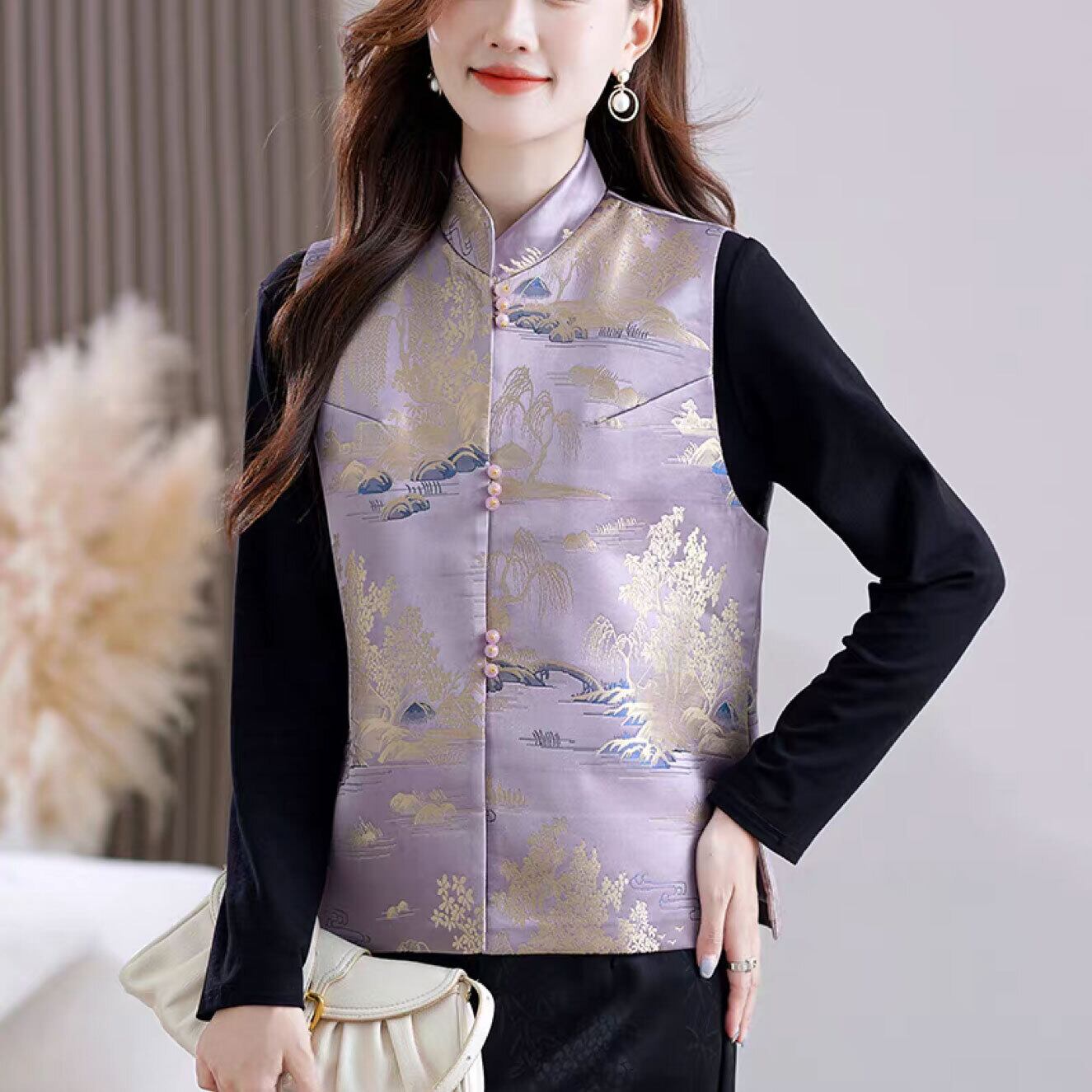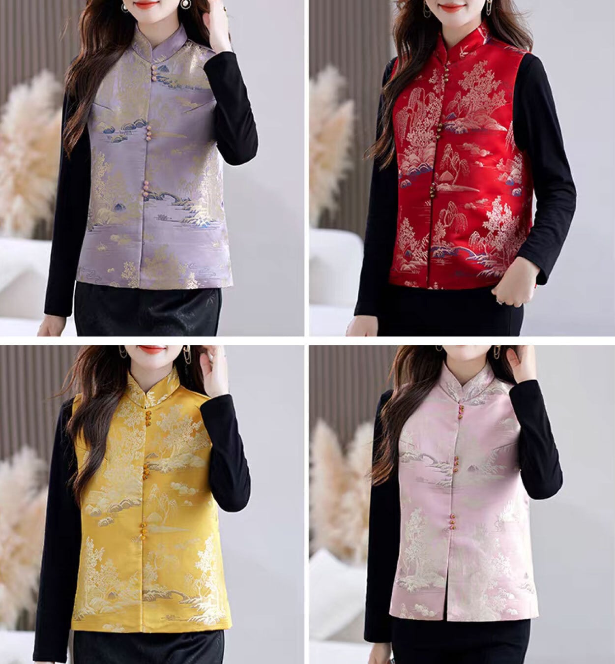 チャイナ服 ベスト エレガント 3連ボタン 上品な風合い ノースリーブ 重ね着にちょうどいいジレ 普段着チャイナ zv111