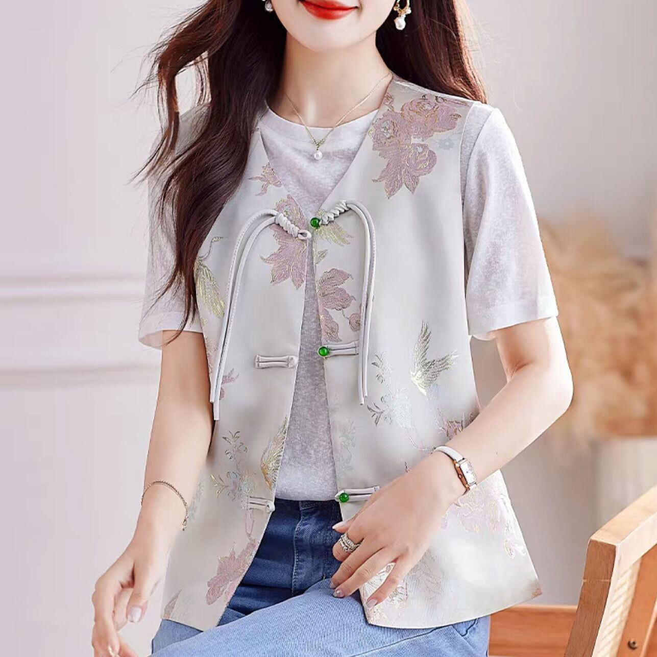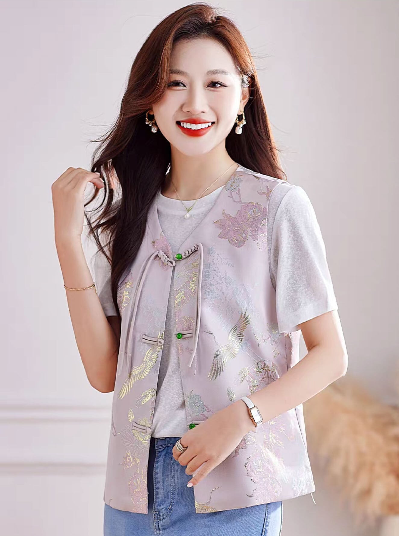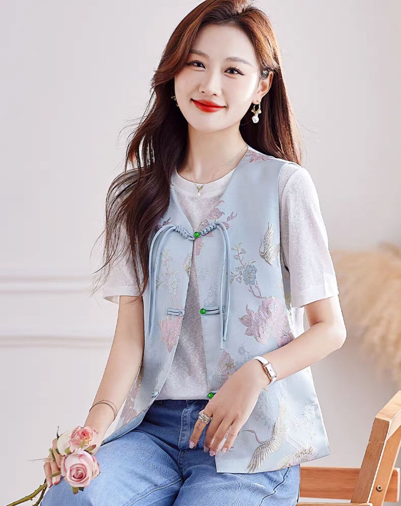 チャイナ服 ベスト エレガント 鶴柄 上品な風合い ノースリーブ zv113