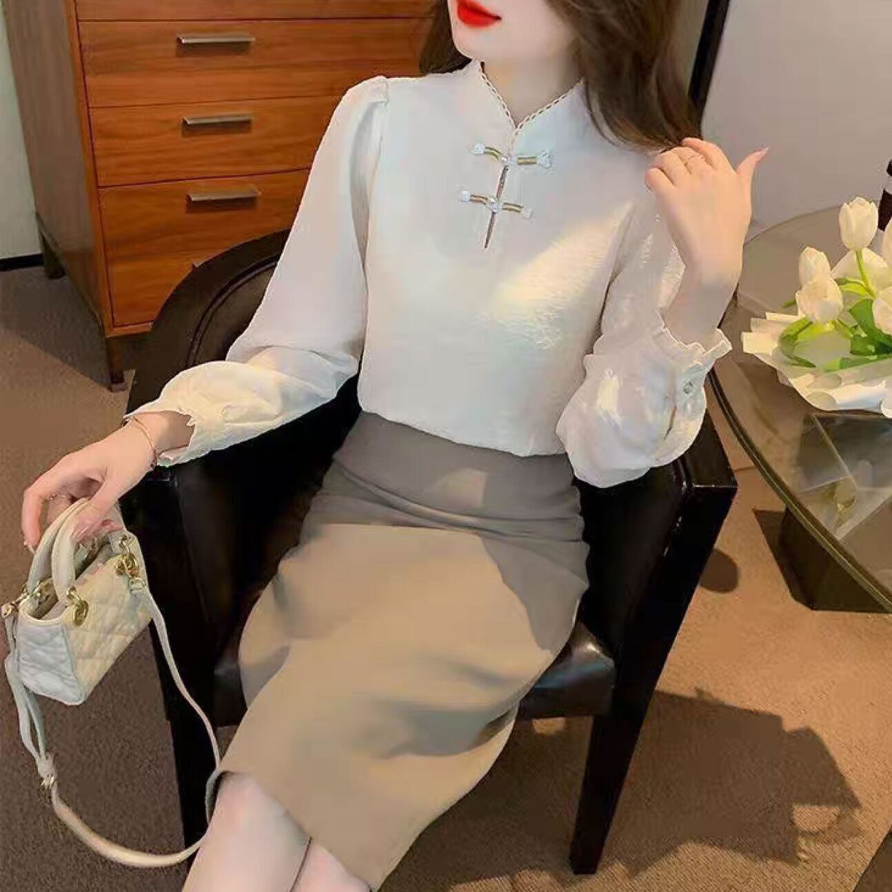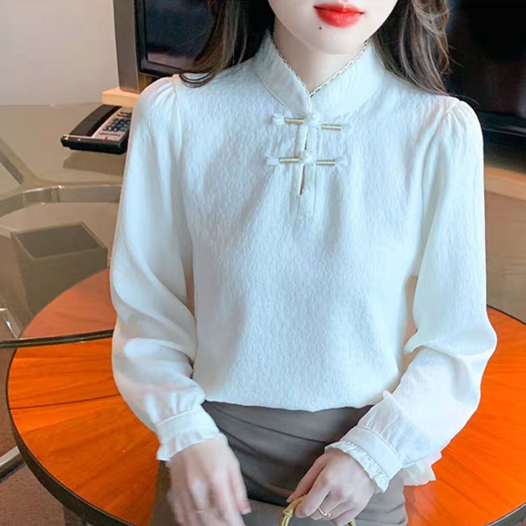 チャイナ服 トップス 長袖 普段着チャイナ シンプル無地 落ち着いた風合い zt674