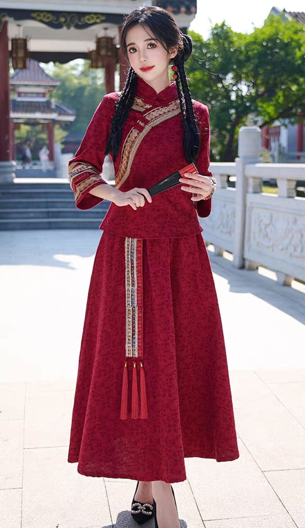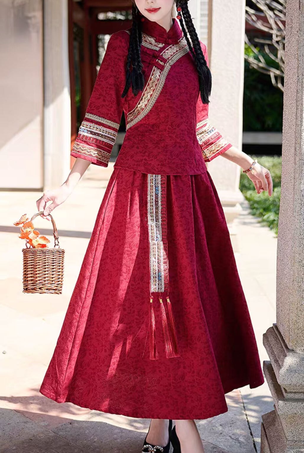 チャイナ服 トップス 装飾チャイナトップス 春秋 七分袖 上品で落ち着いた風合い スカートとセットでも買える zt675