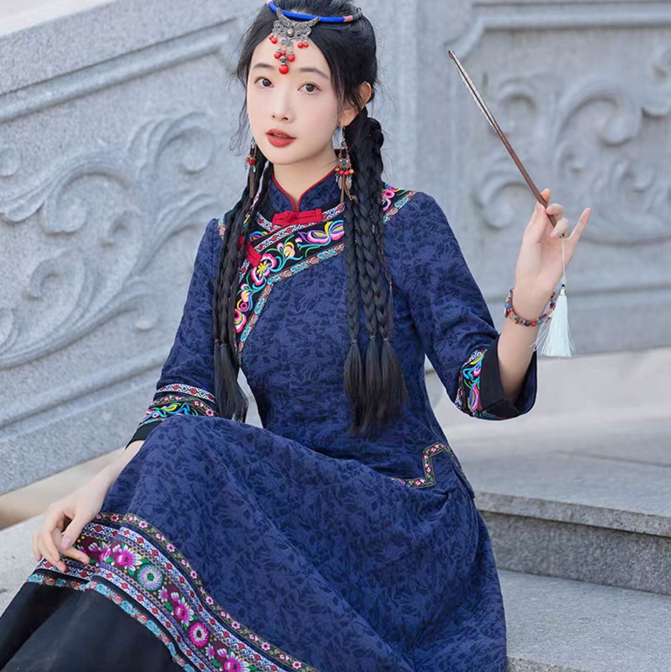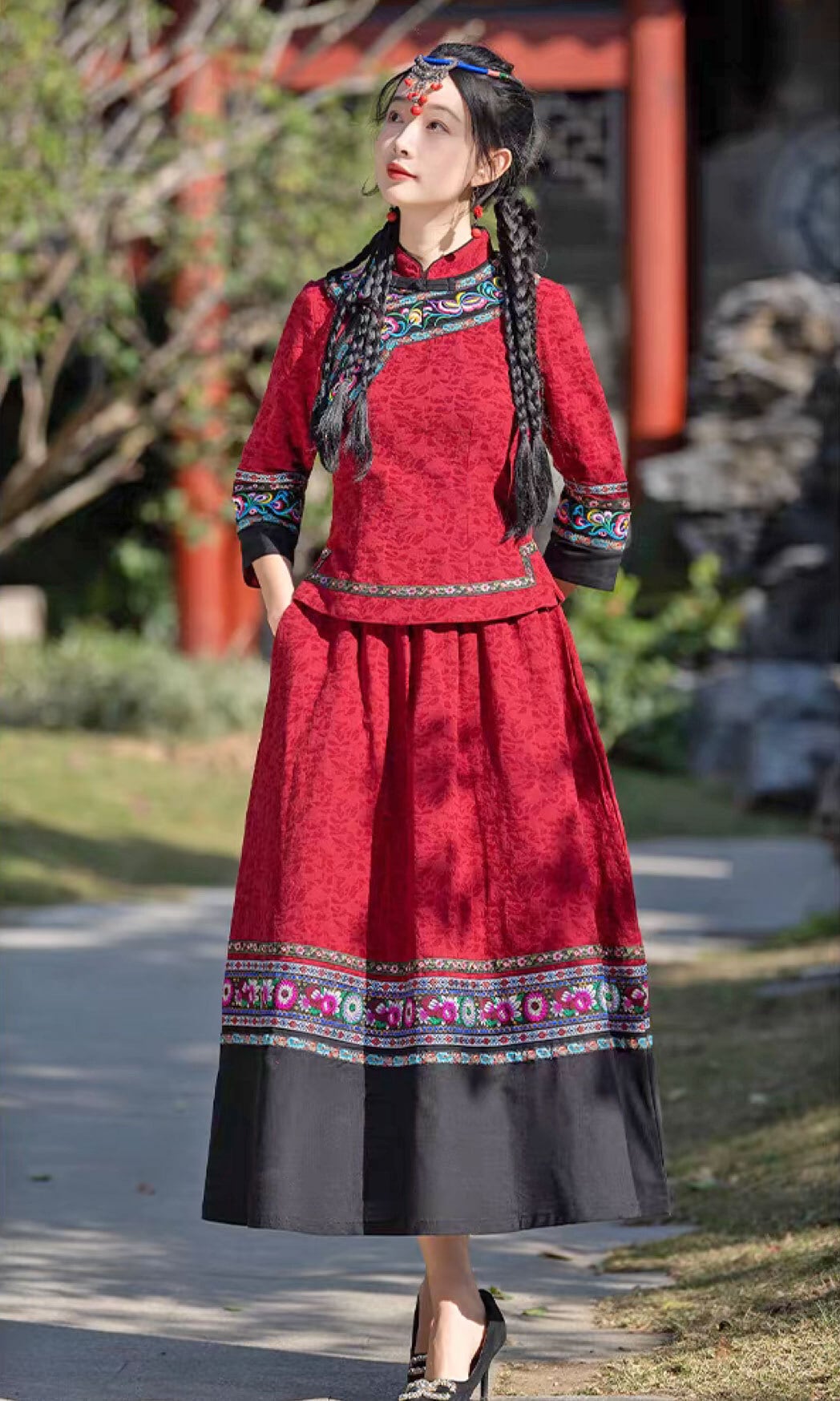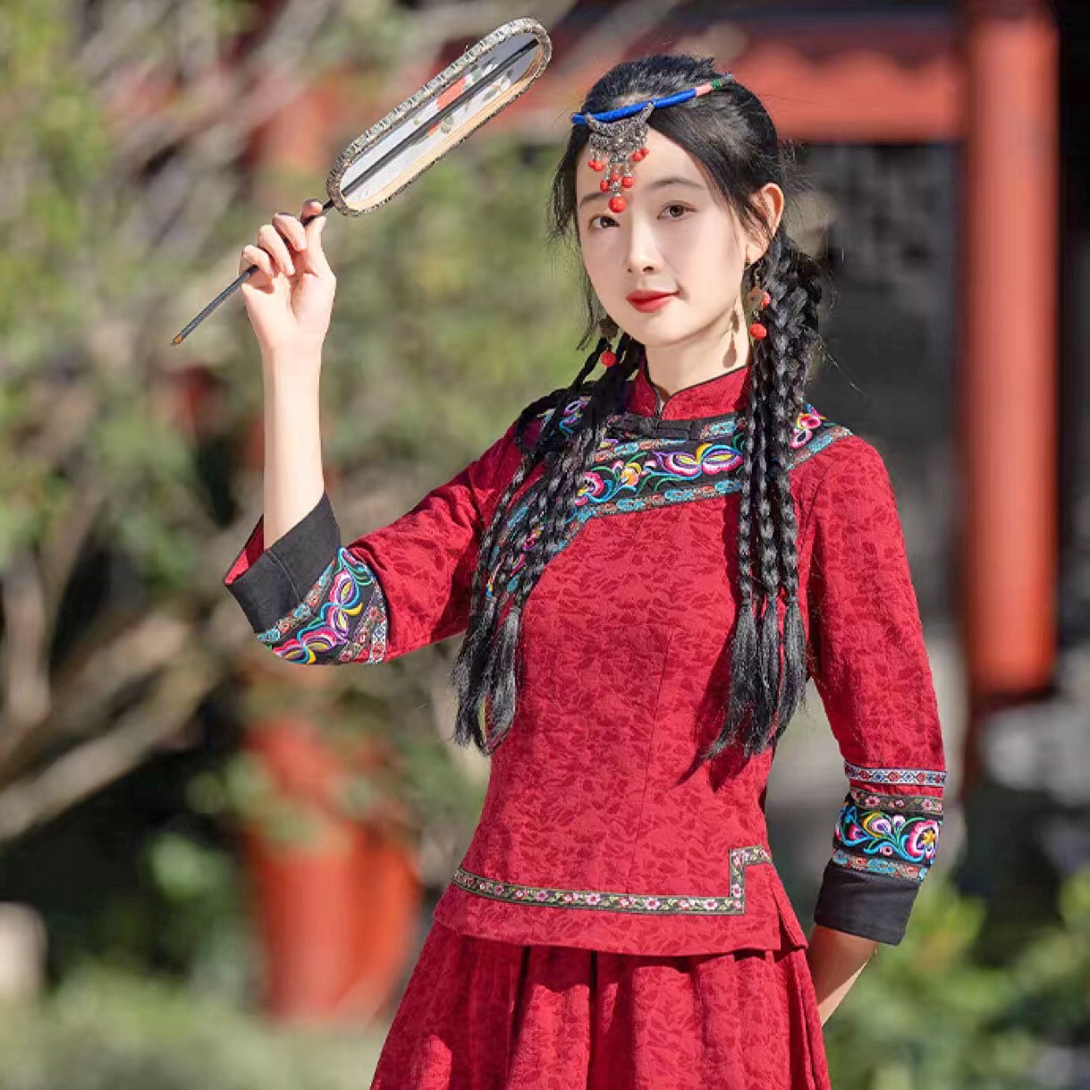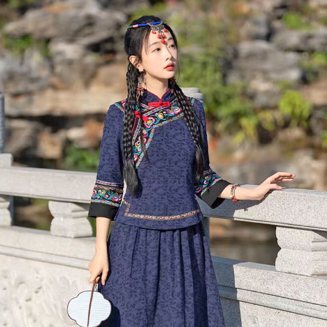 チャイナ服 トップス 刺繍 装飾チャイナトップス 春秋 七分袖 上品で落ち着いた風合い スカートとセットでも買える zt677