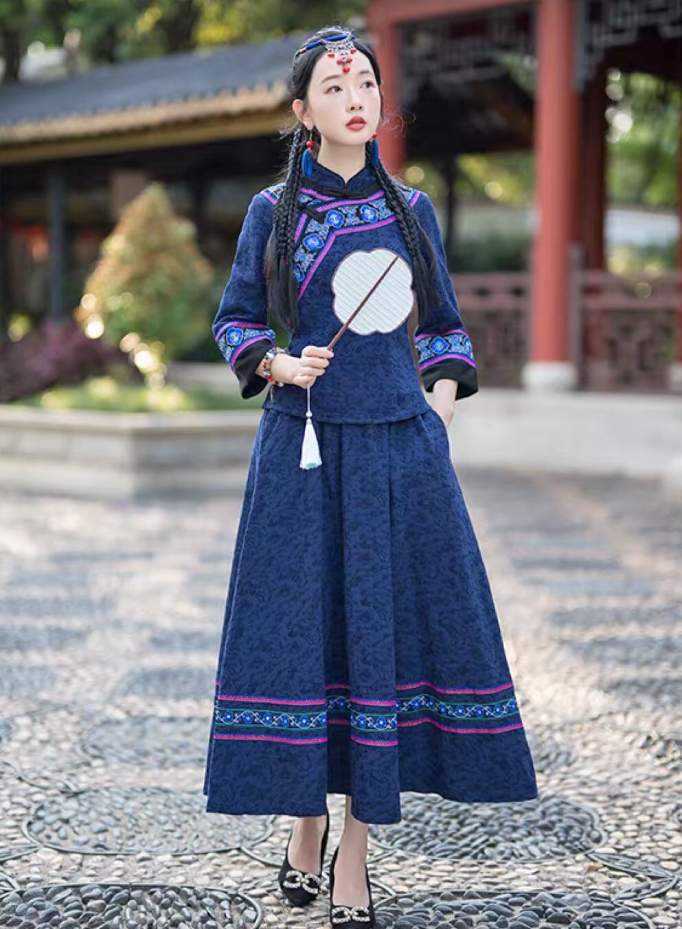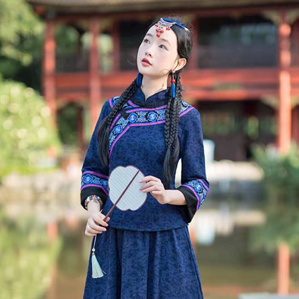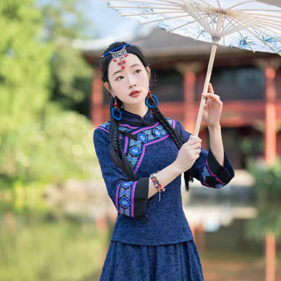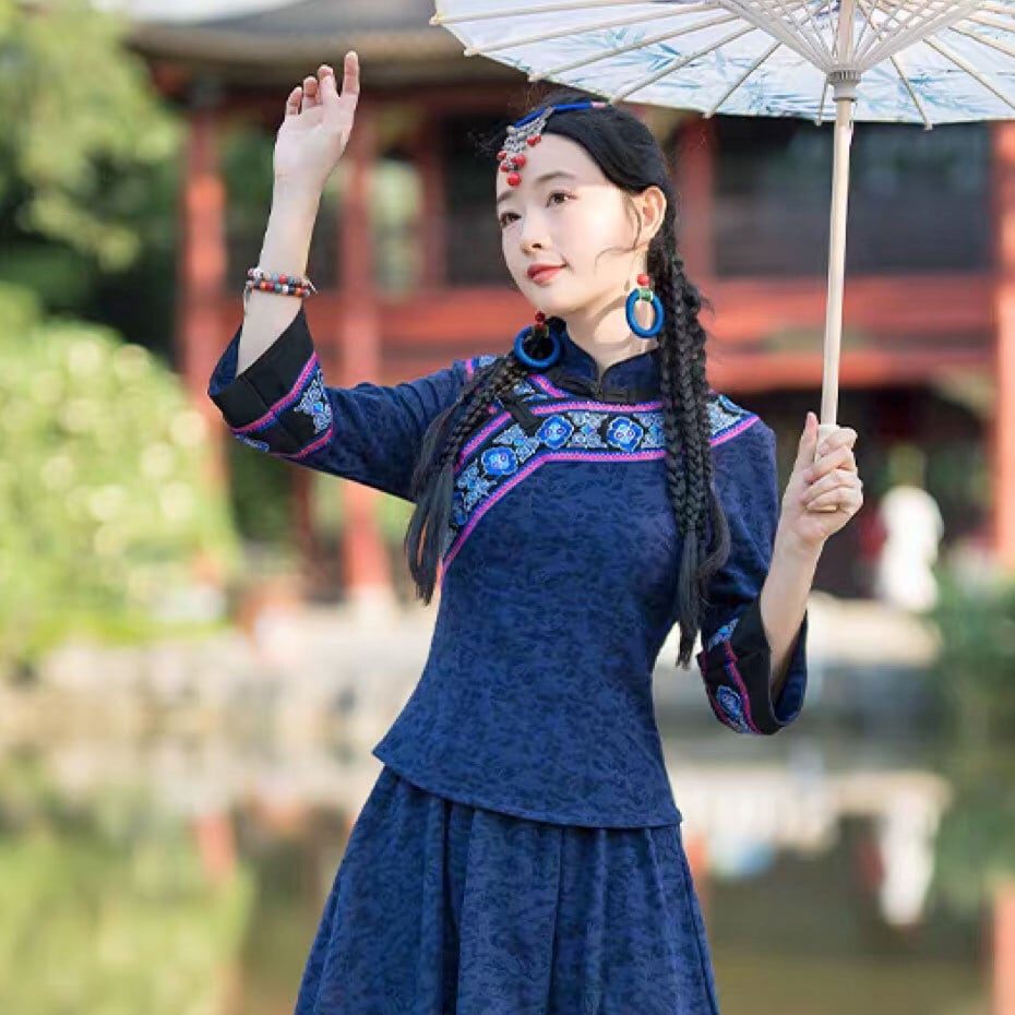 チャイナ服 トップス 刺繍 装飾チャイナトップス 春秋 七分袖 上品で落ち着いた風合い スカートとセットでも買える zt678