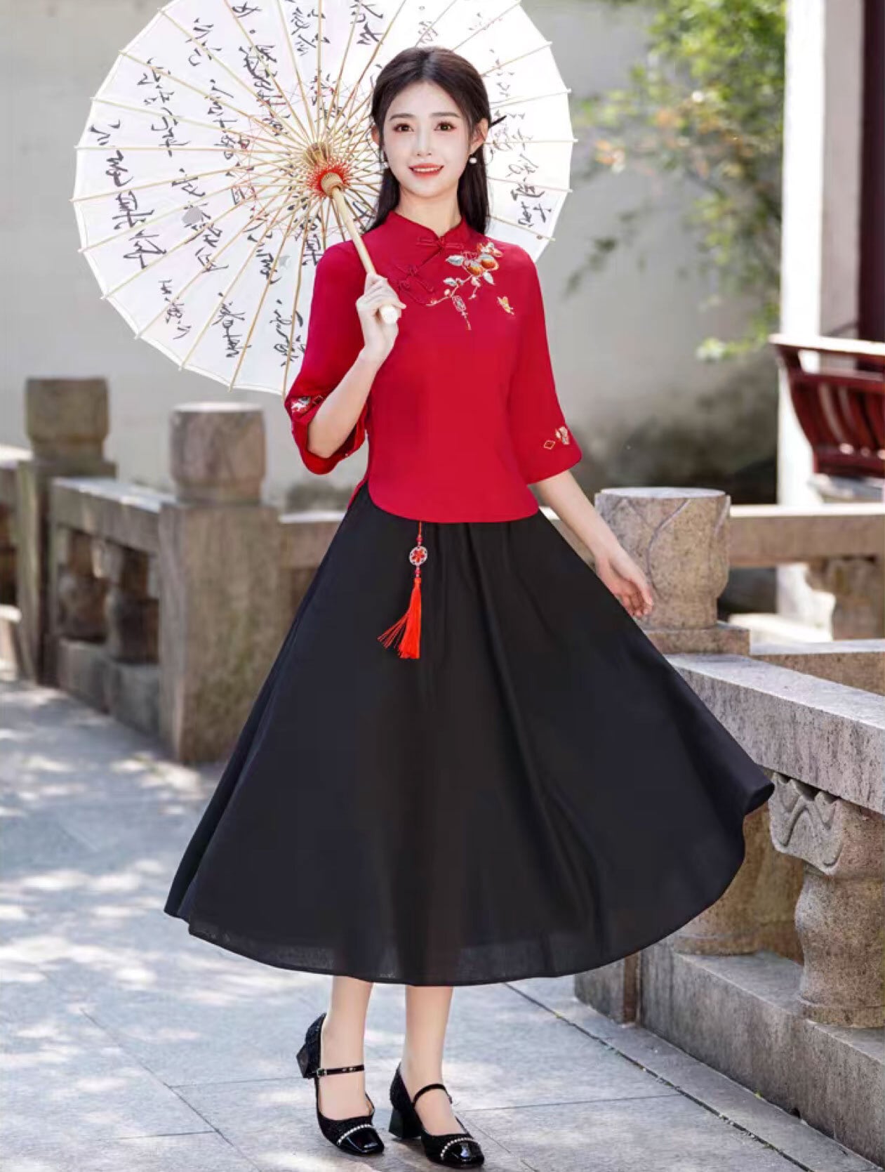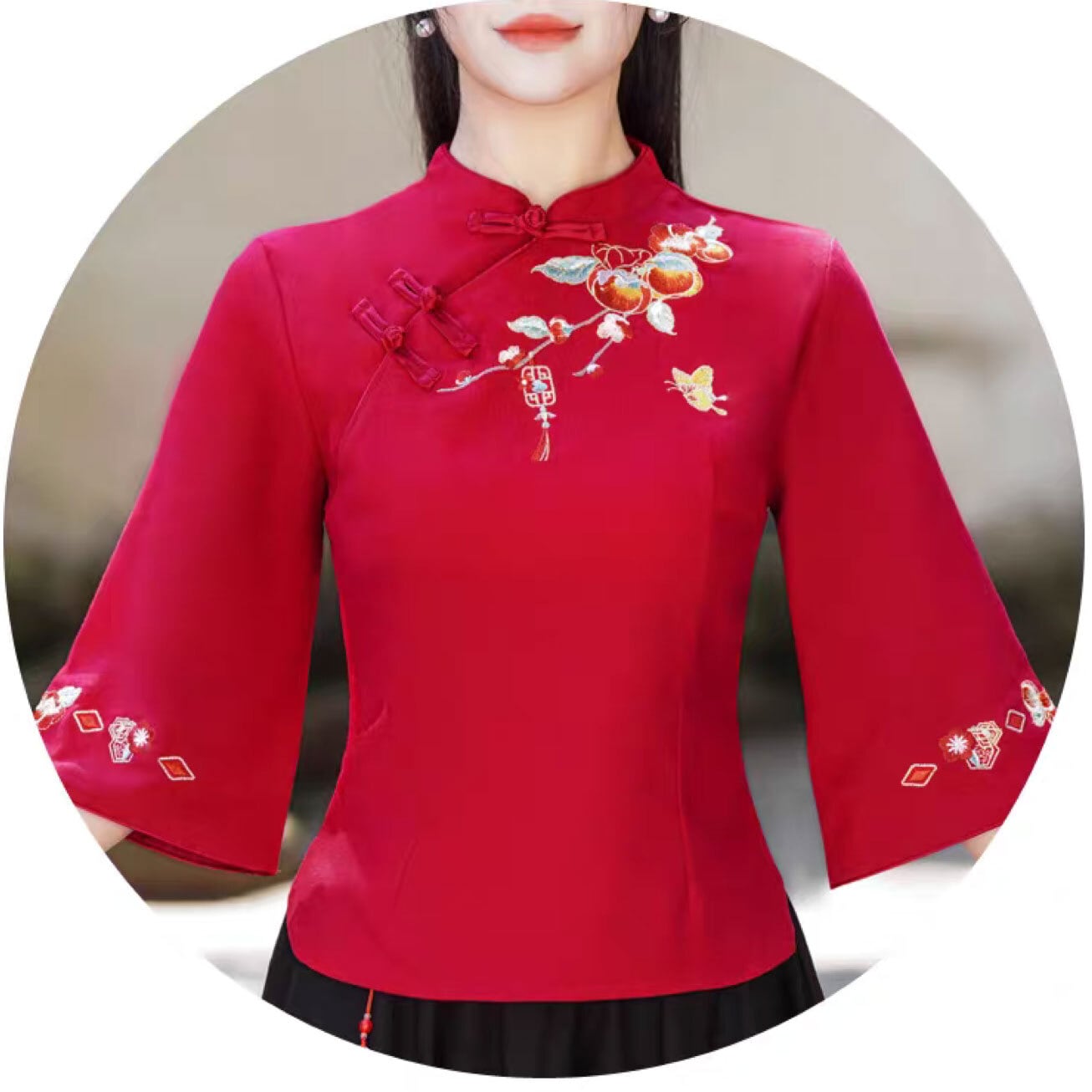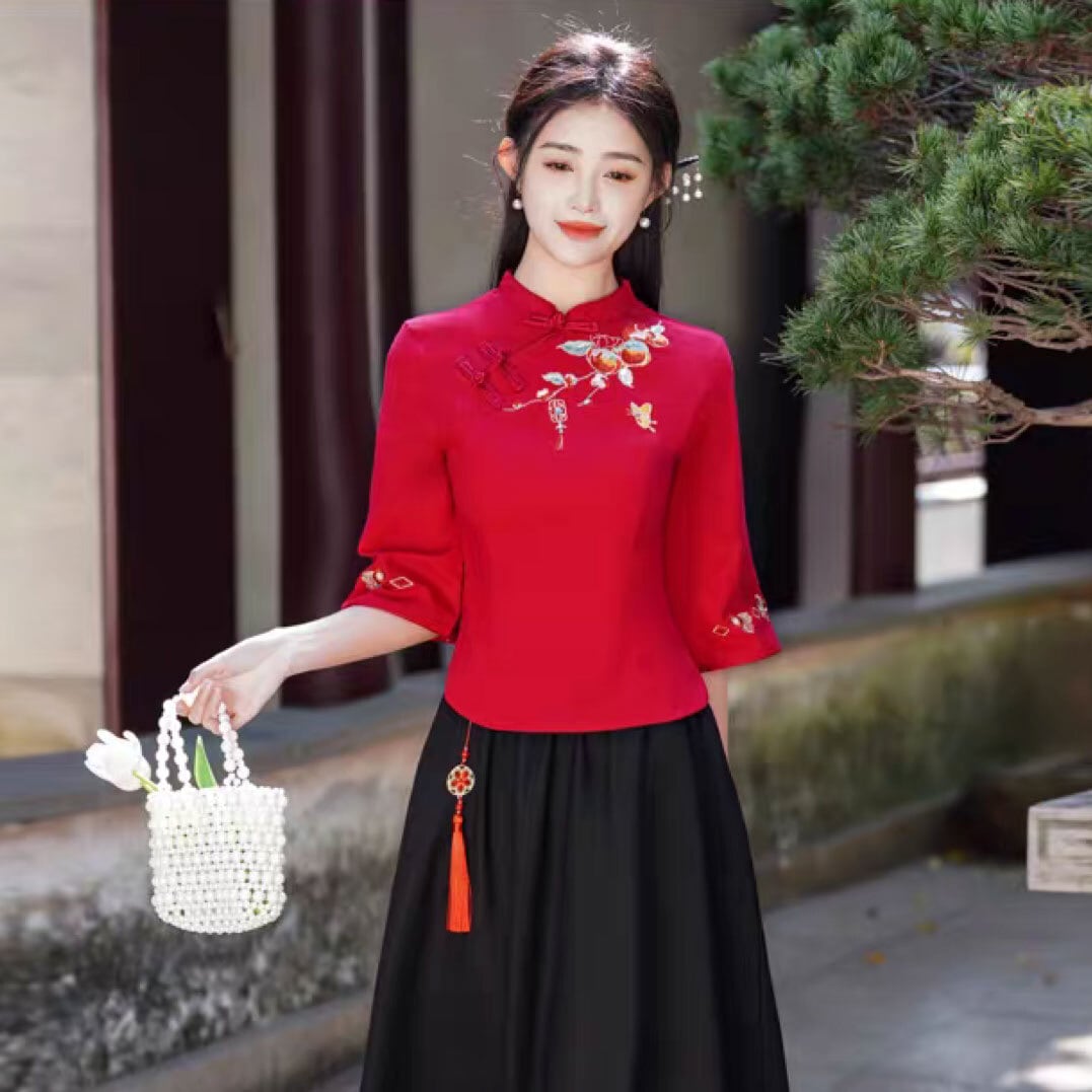 チャイナ服 トップス 刺繍 装飾チャイナトップス 春秋 五分袖 上品で落ち着いた風合い スカートとセットでも買える zh674