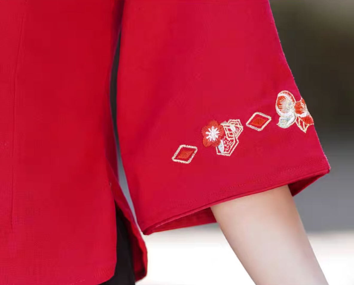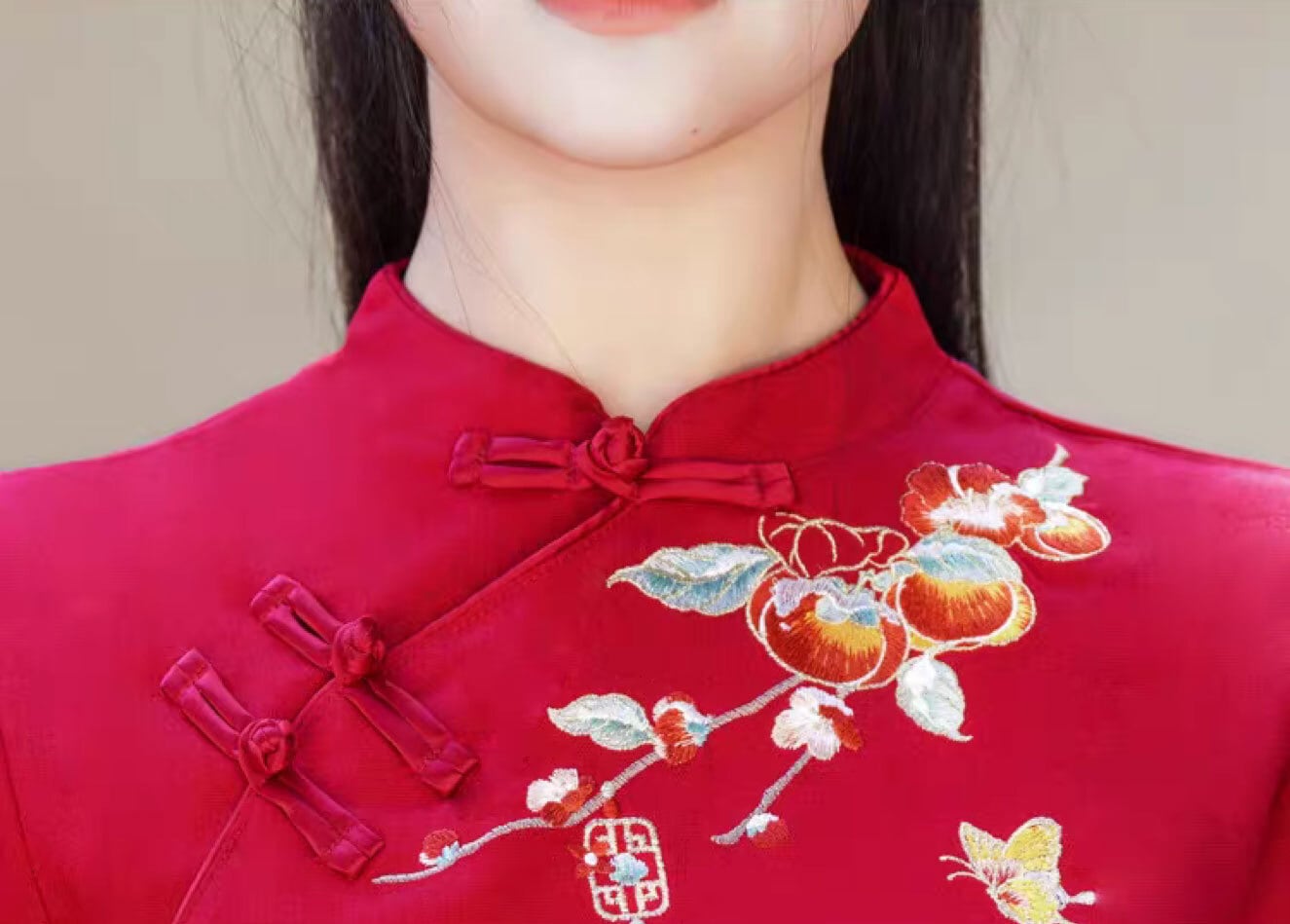 伝統的なチャイナボタン(盤扣)と立ち襟のデザインを活かしつつ、現代のスタイルに馴染むようアレンジされた一着。深みのある「赤」は、顔周りを明るく見せ、特別な日にはもちろん、普段のお出かけにも華やかさをプラスしてくれます。
